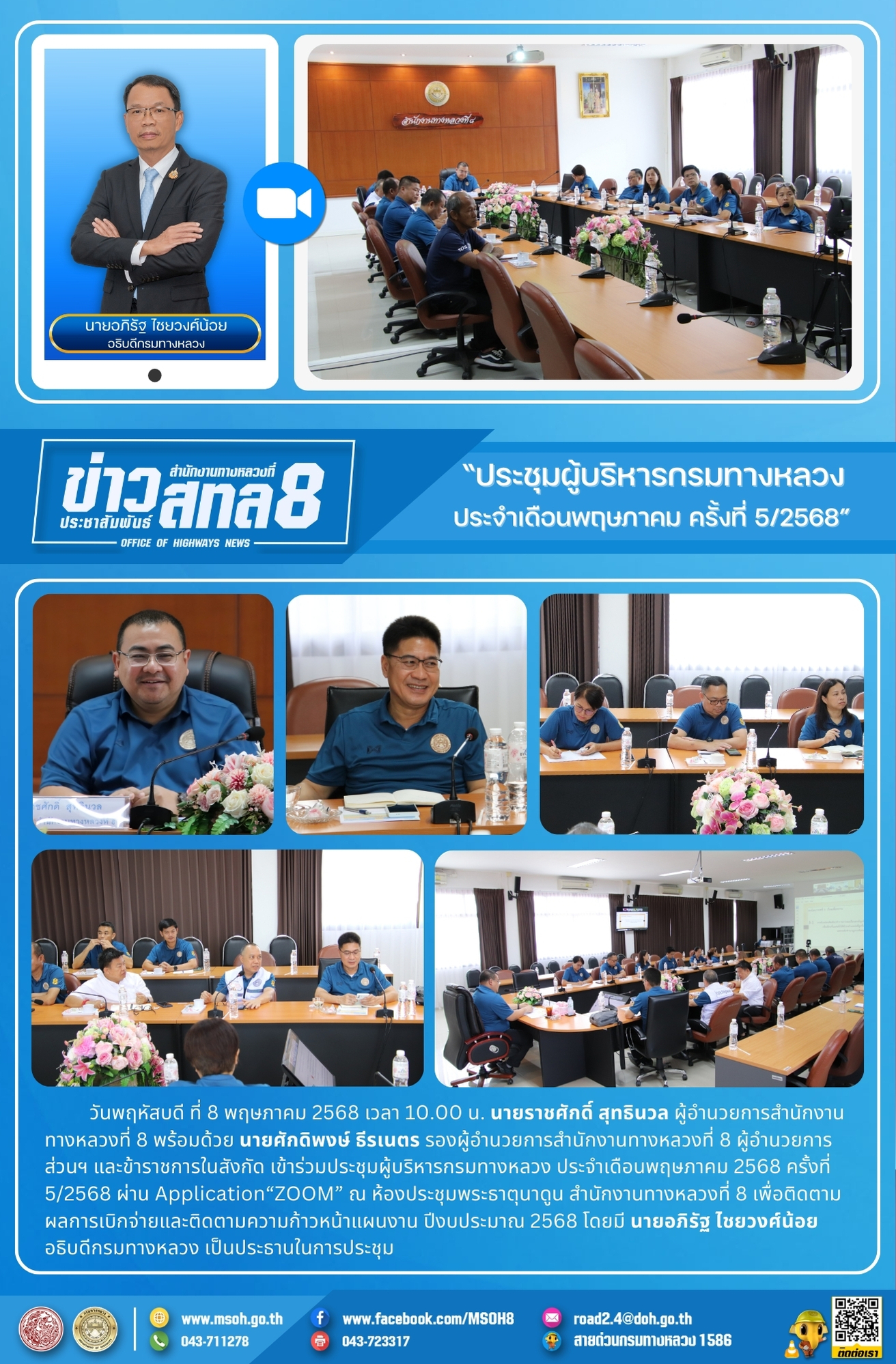 ประชุมผู้บริหารกรมทางหลวงประจำเดือนพฤษภาคม ครั้งที่ 5/2568