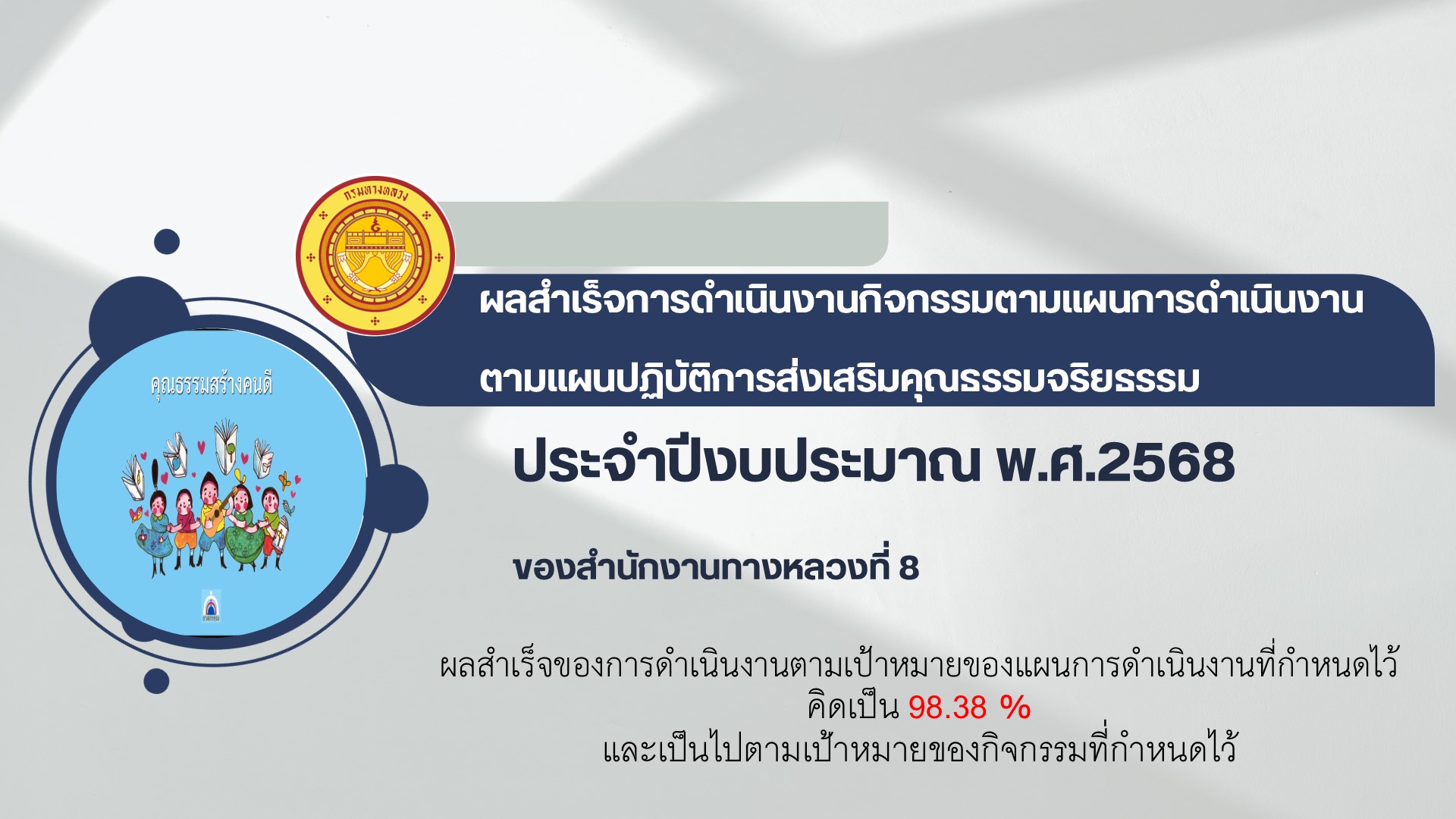 สำนักงานทางหลวงที่ 8 สรุปผลการดำเนินงานกิจกรรม ตามแผนการดำเนินงาน ตามแผนปฏิบัติการส่งเสริมคุณธรรมจริยธรรม ประจำปีงบประมาณ พ.ศ. 2568
