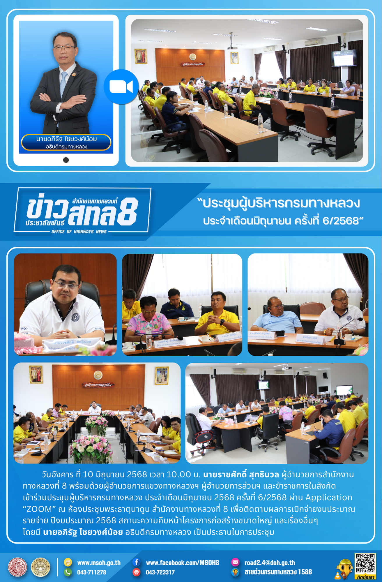 ประชุมผู้บริหารกรมทางหลวง ประจำเดือนมิถุนายน 2568 ครั้งที่ 6/2568