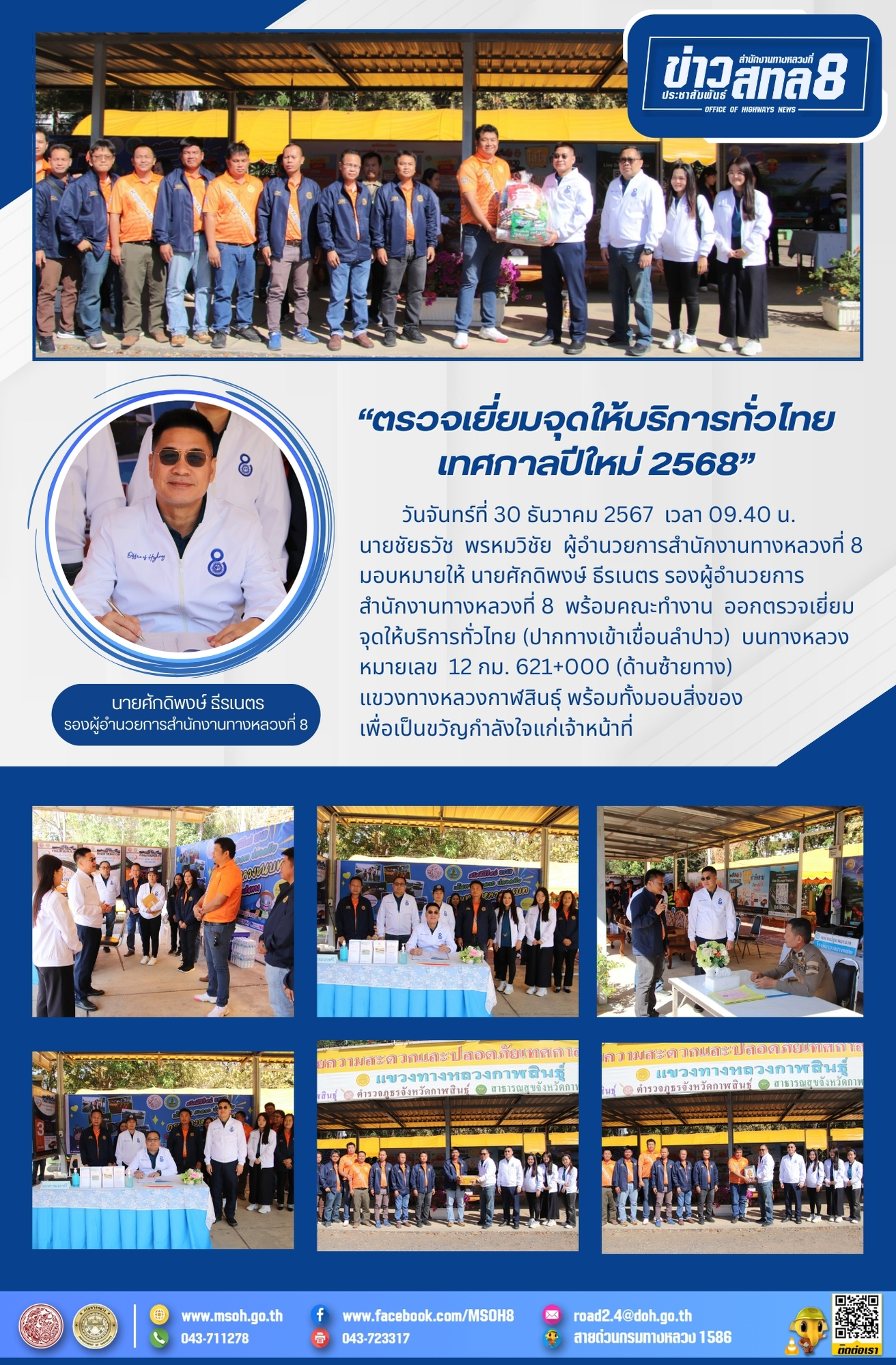 พิธีเปิดจุดให้บริการทั่วไทย (บ้านดงยาง) แขวงทางหลวงร้อยเอ็ด บนทางหลวงหมายเลข 23 กม. 103+750 (ด้านซ้ายทาง) เพื่ออำนวยความสะดวกปลอดภัยให้กับประชาชนในช่วงเทศกาลปีใหม่ 2568