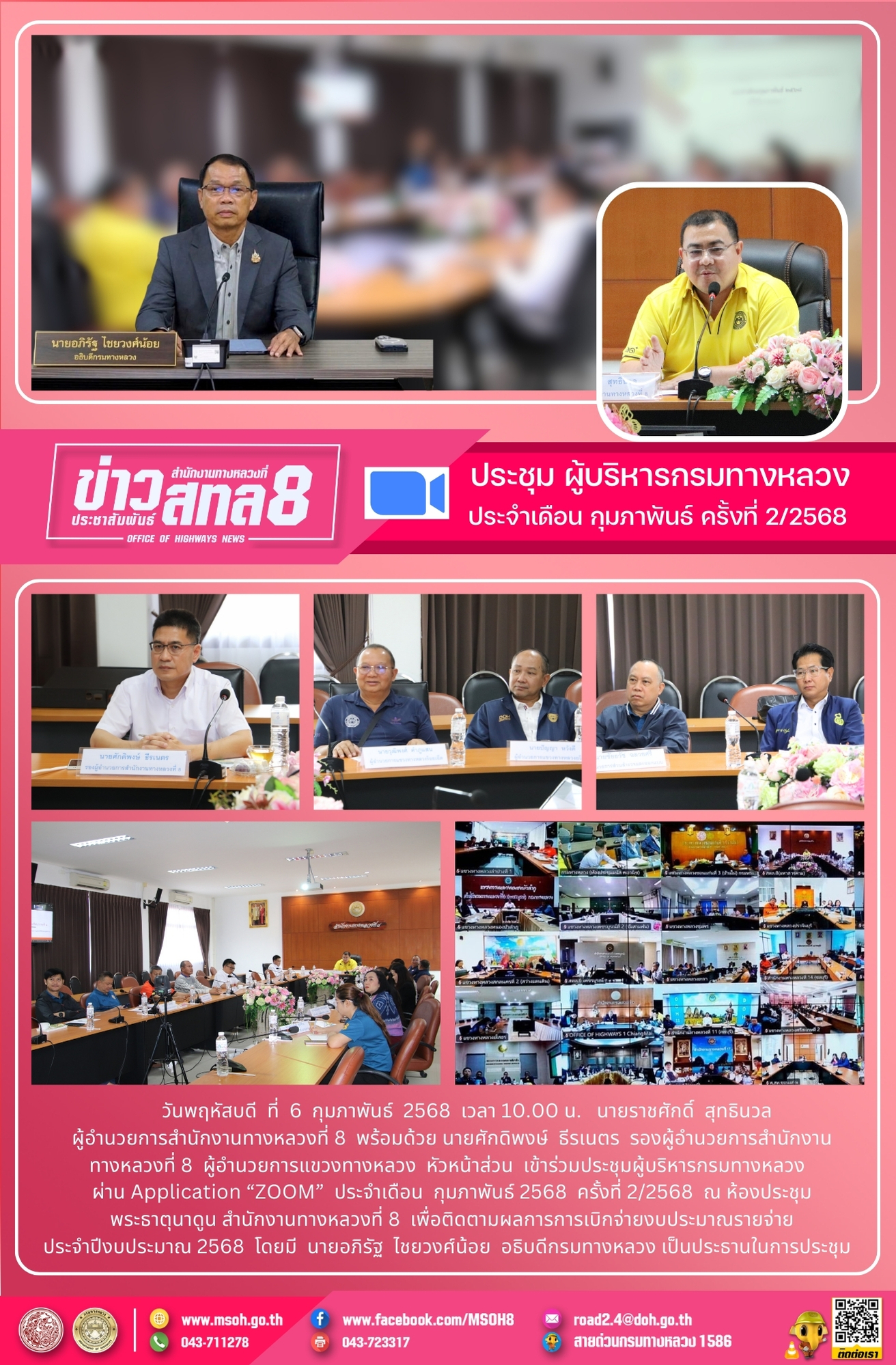 ประชุมผู้บริหารกรมทางหลวง ผ่าน Application “ZOOM” ประจำเดือน กุมภาพันธ์ 2568 ครั้งที่ 2/2568