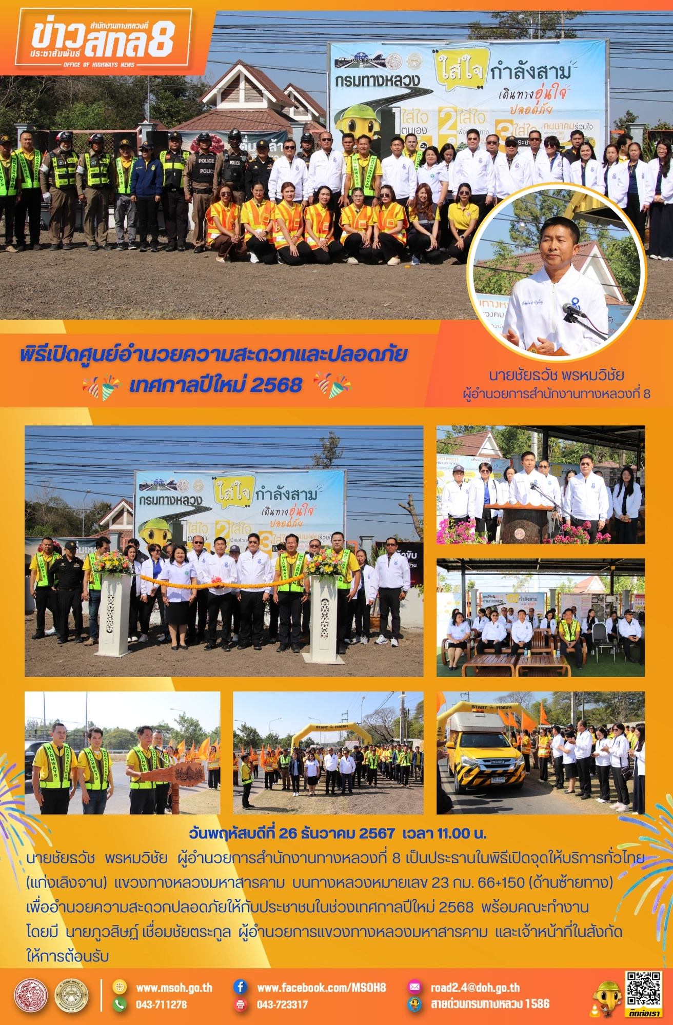 เพื่ออำนวยความสะดวกปลอดภัยให้กับประชาชนในช่วงเทศกาลปีใหม่ 2568 พร้อมคณะทำงาน โดยมี นายภูวสิษฏ์ เชื่อมชัยตระกูล ผู้อำนวยการแขวงทางหลวงมหาสารคาม และเจ้าหน้าที่ในสังกัดให้การต้อนรับ