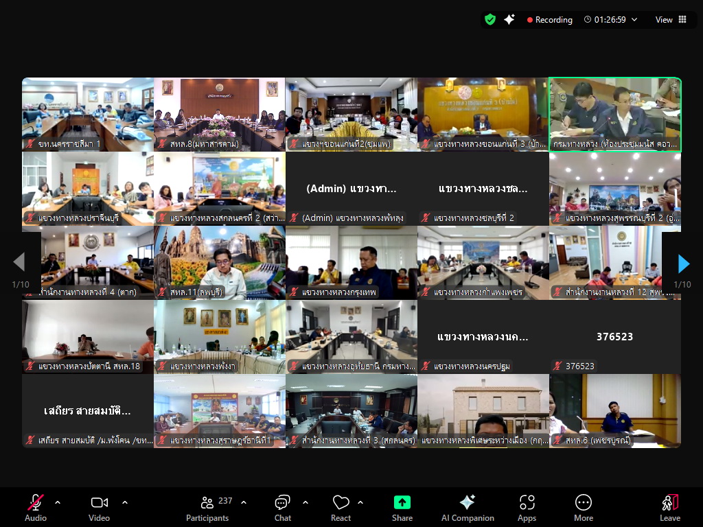 วันพฤหัสบดี ที่ 27 มีนาคม 2568 เวลา 10.00 น. นายราชศักดิ์ สุทธินวล ผู้อำนวยการสำนักงานทางหลวงที่ 8 มอบหมายให้ นายศักดิพงษ์ ธีรเนตร รองผู้อำนวยการสำนักงานทางหลวงที่ 8 พร้อมด้วยคณะทำงานฯ เข้าร่วมประชุมการเตรียมความพร้อมการอำนวยความสะดวกและปลอดภัยช่วงเทศกาลสงกรานต์ 2568 ผ่านระบบ “Application ZOOM” โดยมี นายพงศกร จุลละโพธิ รองอธิบดีฝ่ายบำรุงทาง เป็นประธานในการประชุม พร้อมด้วยเจ้าหน้าที่ที่เกี่ยวข้องเข้าร่วมประชุม ณ ห้องประชุมพระธาตุนาดูน สำนักงานทางหลวงที่ 8