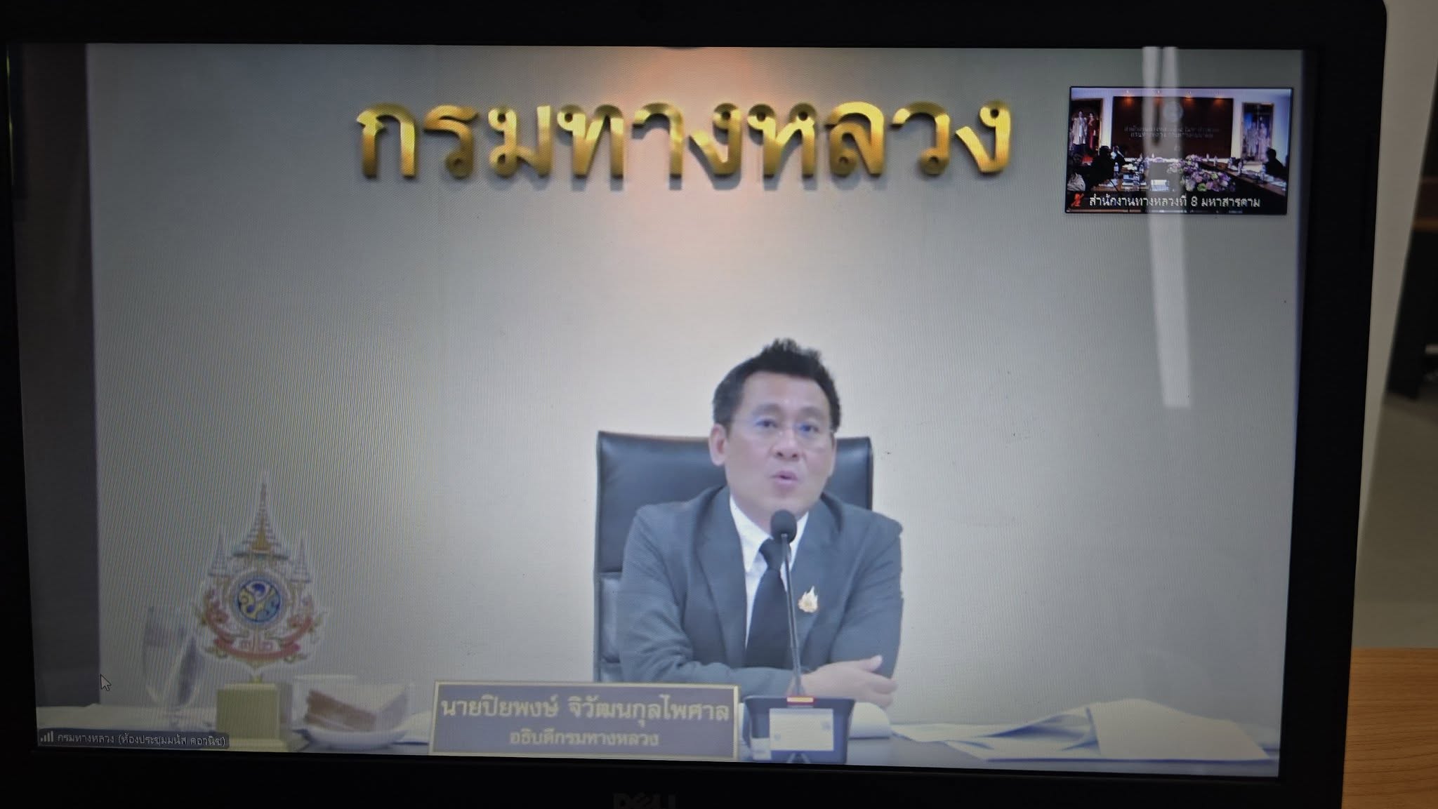 วันศุกร์ ที่ 21 พฤศจิกายน 2568 เวลา 09.30 น. นายราชศักดิ์ สุทธินวล ผู้อำนวยการสำนักงานทางหลวงที่ 8 พร้อมด้วย นายศักดิพงษ์ ธีรเนตร รองผู้อำนวยการสำนักงานทางหลวงที่ 8 ผู้อำนวยการส่วนฯ และข้าราชการในสังกัด เข้าร่วมประชุมเร่งรัดติดตามผลการดำเนินงานและการเบิกจ่ายงบประมาณรายจ่าย ประจำปีงบประมาณ พ.ศ. 2569 ผ่าน Application “ZOOM” เพื่อติดตามเงินกันไว้เบิกเหลื่อมปี 2568 สรุปผลการเบิกจ่ายและสถานะการดำเนินงานของงบประมาณรายจ่ายประจำปีงบประมาณ พ.ศ.2569 ณ ห้องประชุมพระธาตุนาดูน สำนักงานทางหลวงที่ 8 โดยมี นายปิยพงษ์ จิวัฒนกุลไพศาล อธิบดีกรมทางหลวง เป็นประธานในการประชุม