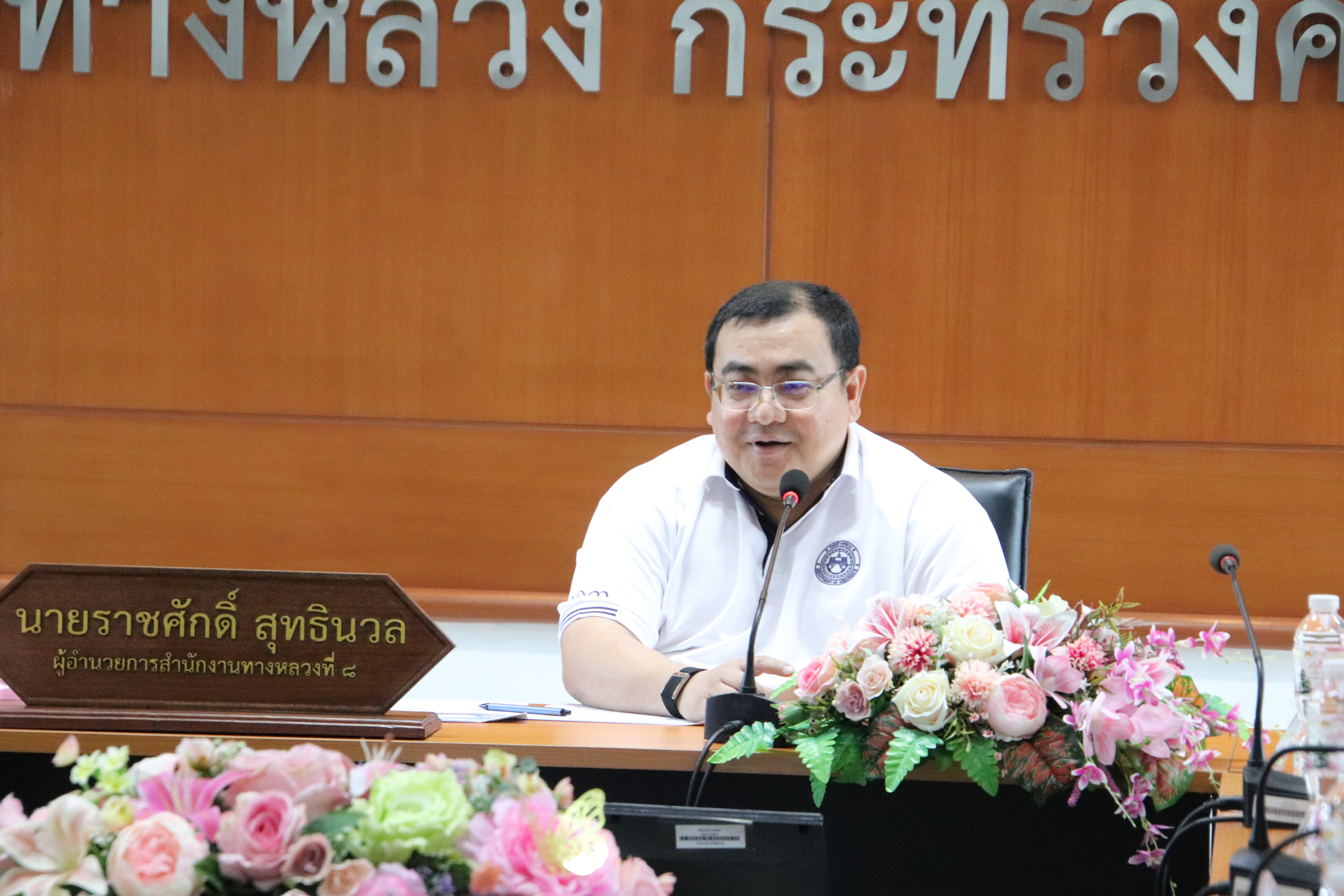 วันพุธ ที่ 4 กุมภาพันธ์ 2569 เวลา 10.00 น. นายราชศักดิ์ สุทธินวล ผู้อำนวยการสำนักงานทางหลวงที่ 8 พร้อมด้วย นายศักดิพงษ์ ธีรเนตร รองผู้อำนวยการสำนักงานทางหลวงที่ 8 ผู้อำนวยการส่วน และข้าราชการในสังกัด เข้าร่วมประชุมผู้บริหารกรมทางหลวง ประจำเดือนมกราคม 2569 ผ่าน Application “ZOOM”ณ ห้องประชุมพระธาตุนาดูนสำนักงานทางหลวงที่ 8 เพื่อติดตามผลการเบิกจ่ายเงินงบประมาณที่ได้รับในปีงบประมาณ พ.ศ. 2568, สถานะการดำเนินงานงบประมาณรายจ่าย ประจำปีงบประมาณ พ.ศ. 2569, ผลการดำเนินงานของคณะทำงาน Road Safety Audit ของสำนักงานทางหลวง, ฯลฯ โดยมี นายปิยพงษ์ จิวัฒนกุลไพศาล อธิบดีกรมทางหลวง เป็นประธานในการประชุม