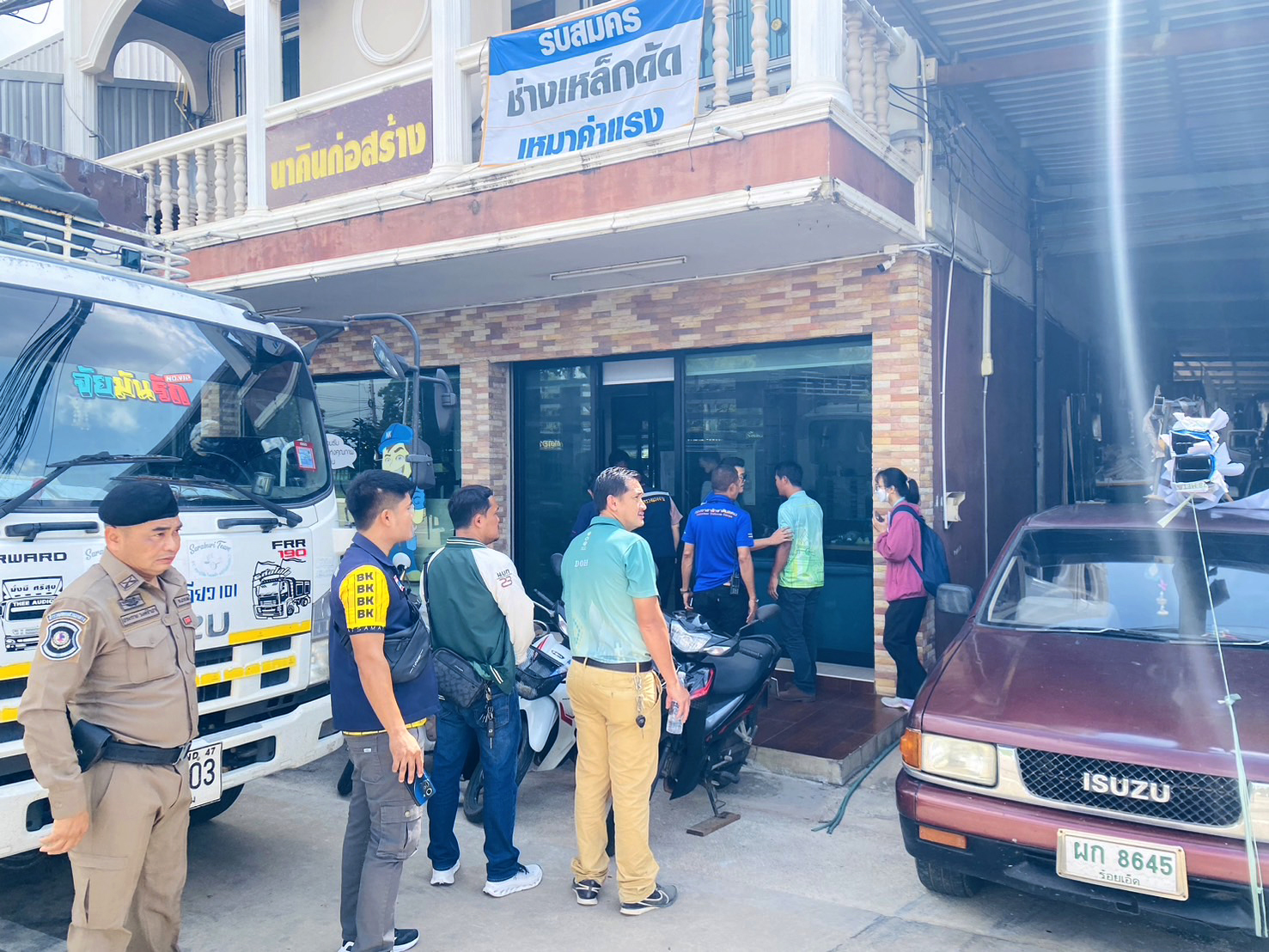 “ร่วมลงพื้นที่ตรวจสอบข้อเท็จจริงและพิจารณาดำเนินการตามอำนาจหน้าที่ และระเบียบกฏหมายที่เกี่ยวข้อง ณ ร้านนครยนต์ (สี่แยกบายพาสสุวรรณภูมิ)”