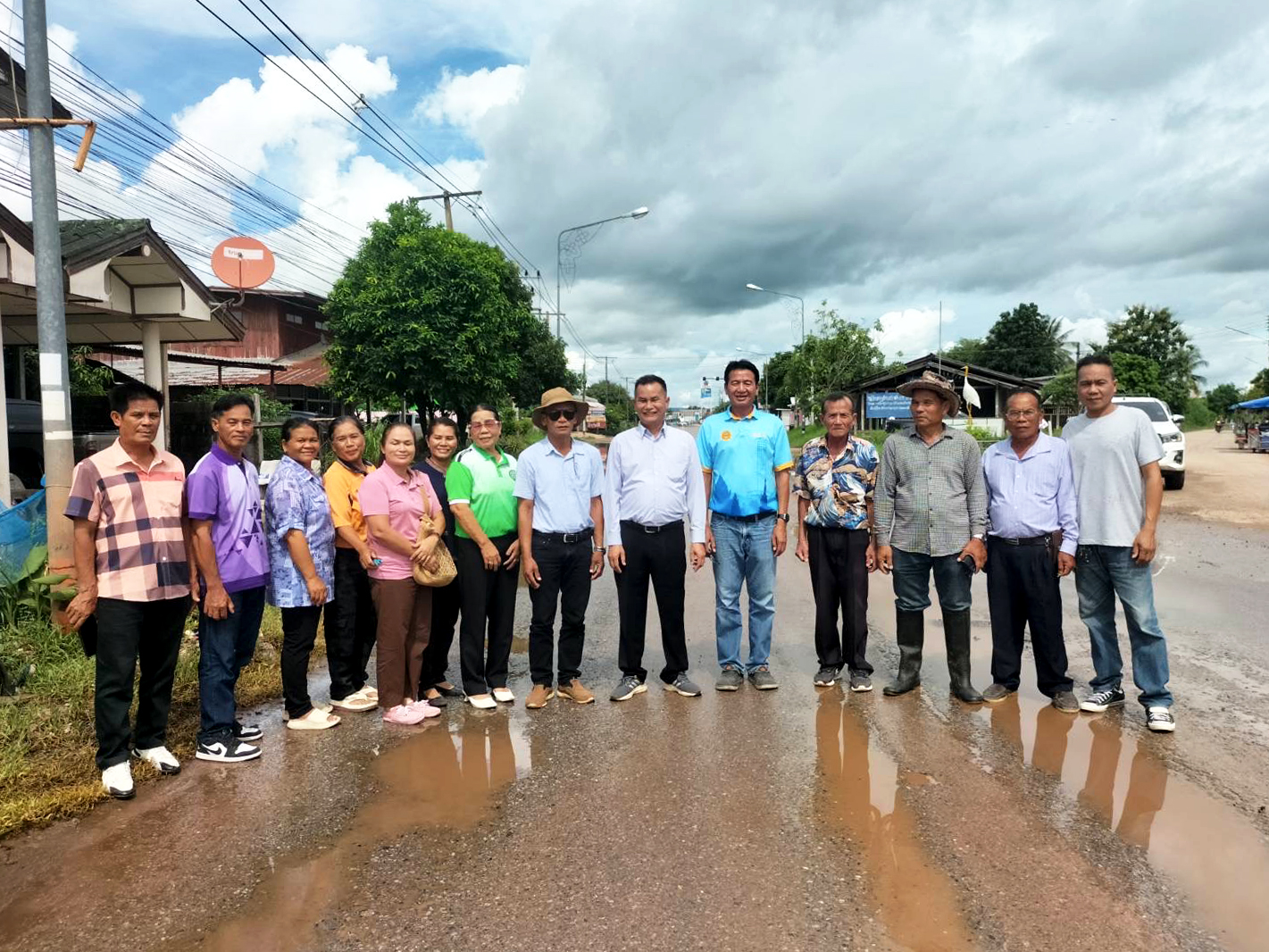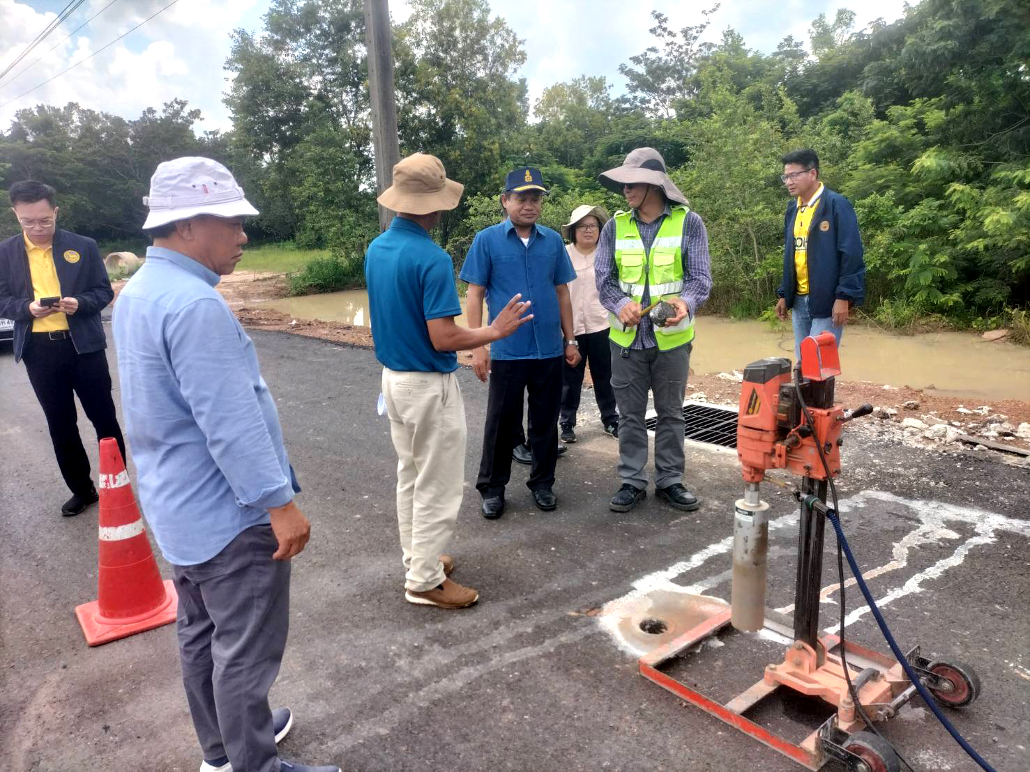 “ร่วมลงพื้นที่ตรวจสอบบริเวณน้ำท่วมขังผิวจราจร ทล.2418 ระหว่าง กม.22+700 - กม.23+200 (บริเวณบ้านหนองนกเขียน)”