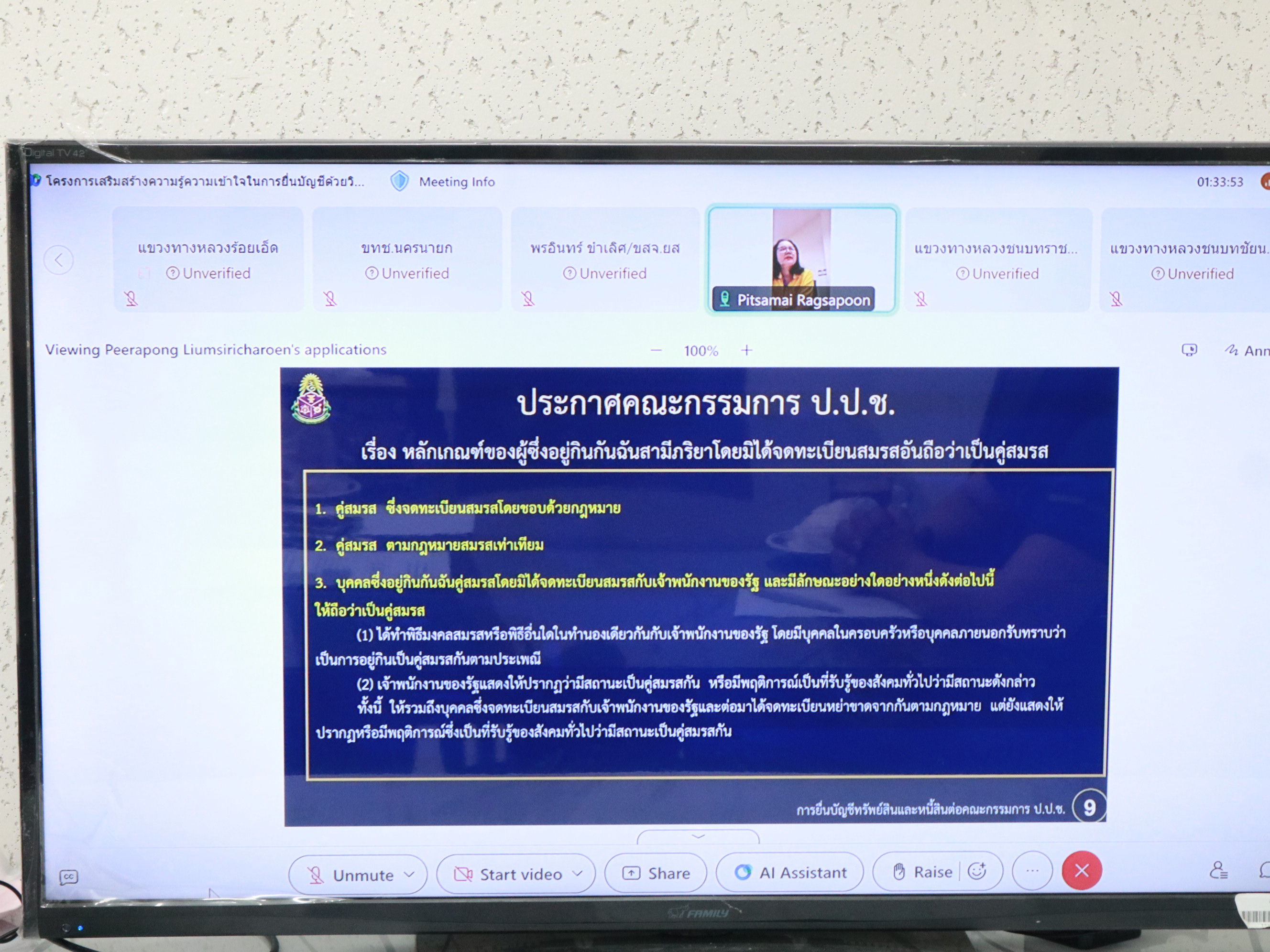"เข้าร่วมประชุมชี้แจงการยื่นบัญชีฯ ตามประกาศคณะกรรมการ ป.ป.ช.”