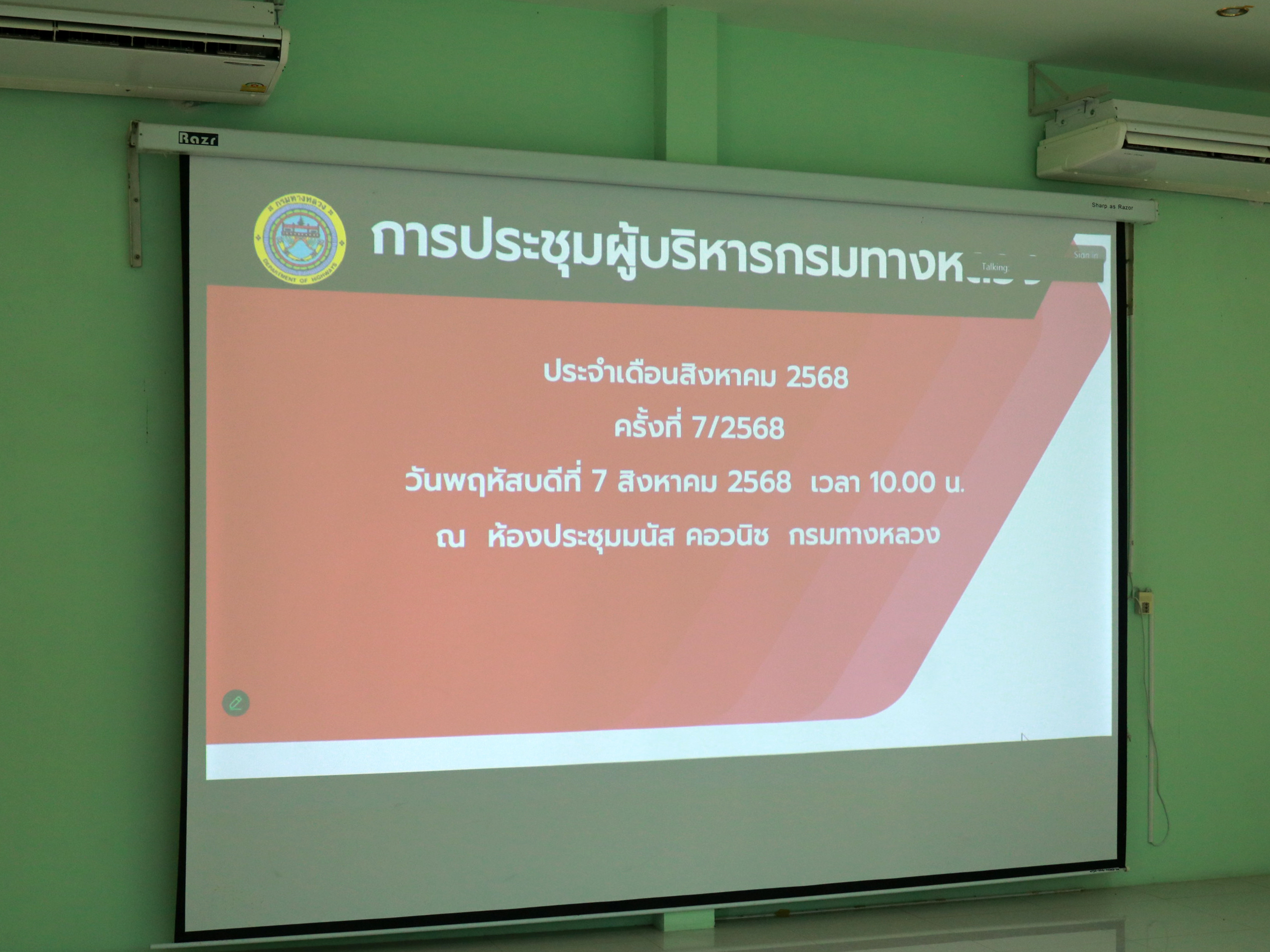 "เข้าร่วมประชุมผู้บริหารกรมทางหลวง ประจำเดือนสิงหาคม 2568 ครั้งที่ 7/2568”