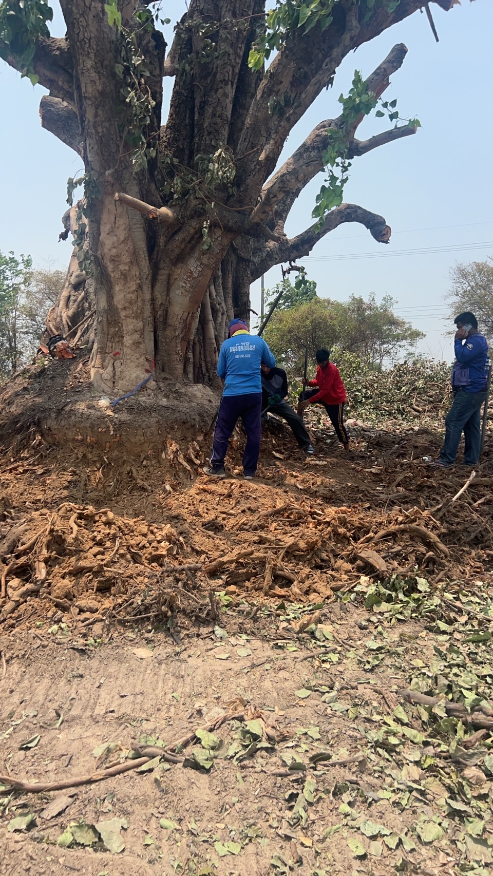 "ลงพื้นที่ตรวจสอบ และแนะนำการปฏิบัติงาน ล้อมย้ายต้นโพธิ์ ขนาดเส้นผ่านศูนย์กลาง 4.50 เมตร ติดขัดการก่อสร้าง ทล.2116 ตอน ร่องคำ - โพนทอง ระหว่าง กม 56+000 - กม 57+650"