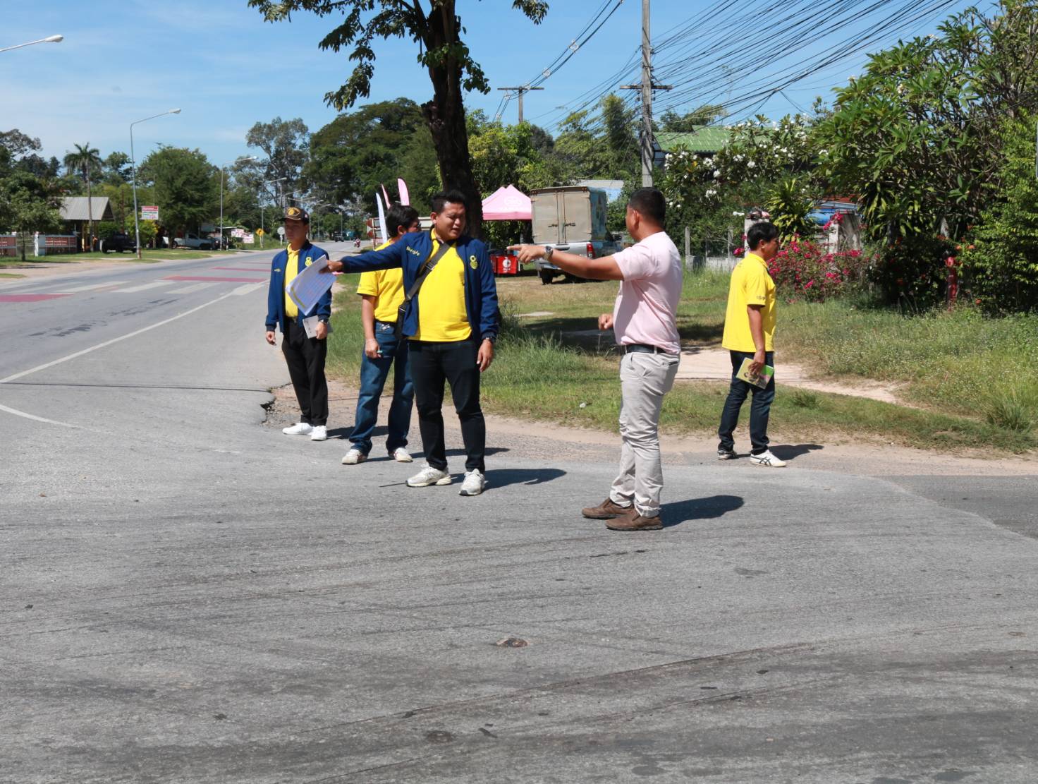 "ร่วมลงพื้นที่ตรวจสอบกายภาพทางหลวงเพื่อวางแผนการปฏิบัติงาน การปรับปรุงจุดเสี่ยงเพื่อทำวงเวียนชั่วคราว ทล.2043 ตอน ร้อยเอ็ด – ยางเฌอ ที่กม.9+850 (แยกบ้านหนองไผ่)"