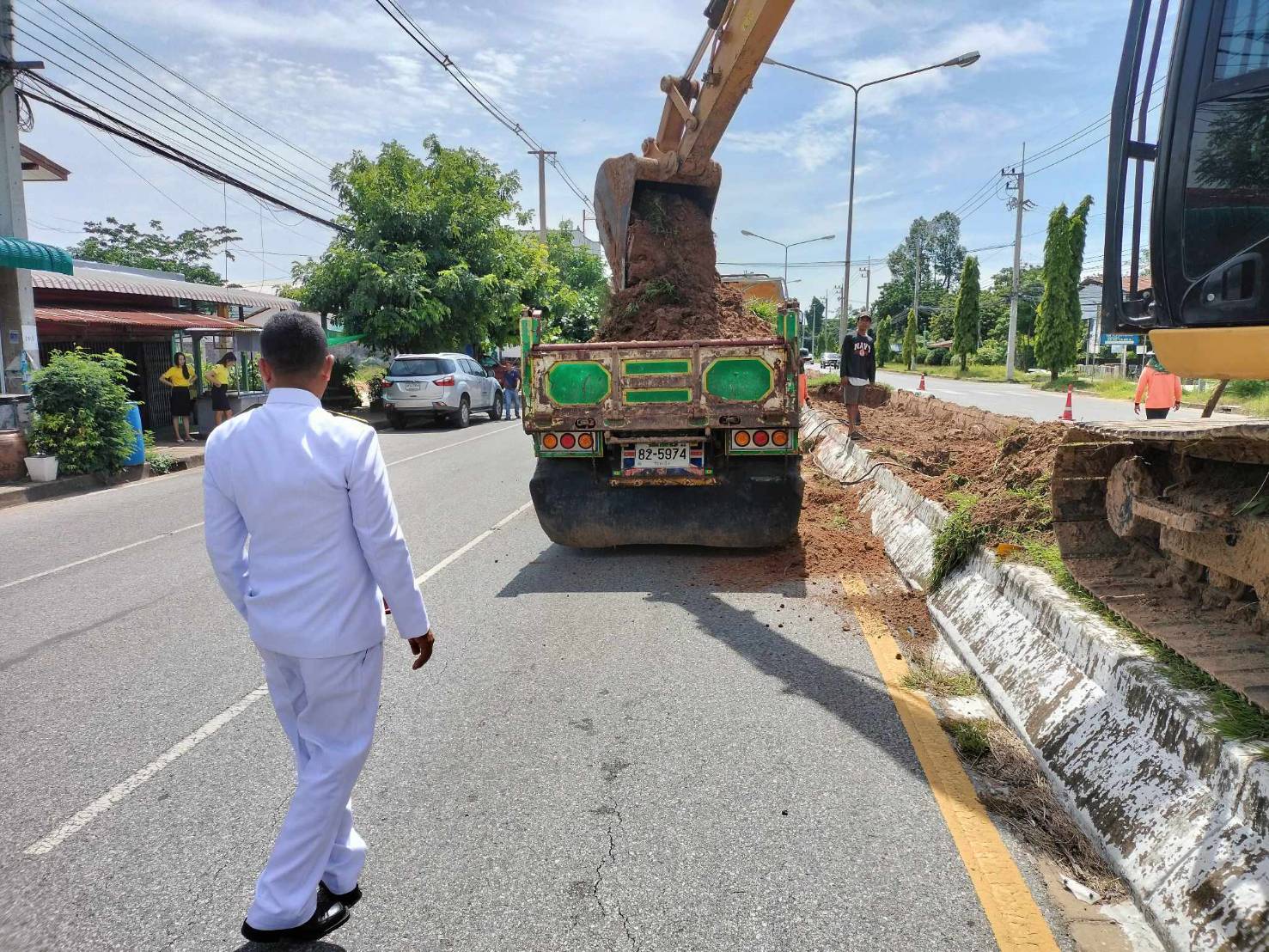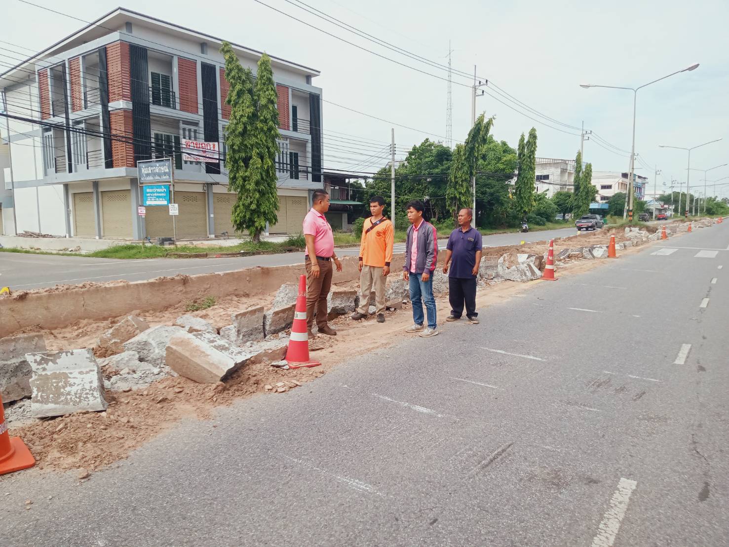 "ร่วมลงพื้นที่ตรวจสอบ แนะนำการวางแผนการแก้ไขปัญหาน้ำขัง การระบายน้ำเสียจากชุมชนข้างทางในพื้นที่ก่อสร้างโครงการใหญ่ พร้อมด้วยวิศวกรตัวแทนผู้รับจ้างโครงการ ในทางหลวงหมายเลข 215 ตอน ร้อยเอ็ด - สุวรรณภูมิ ระหว่าง กม.4+600 - กม.5+100"