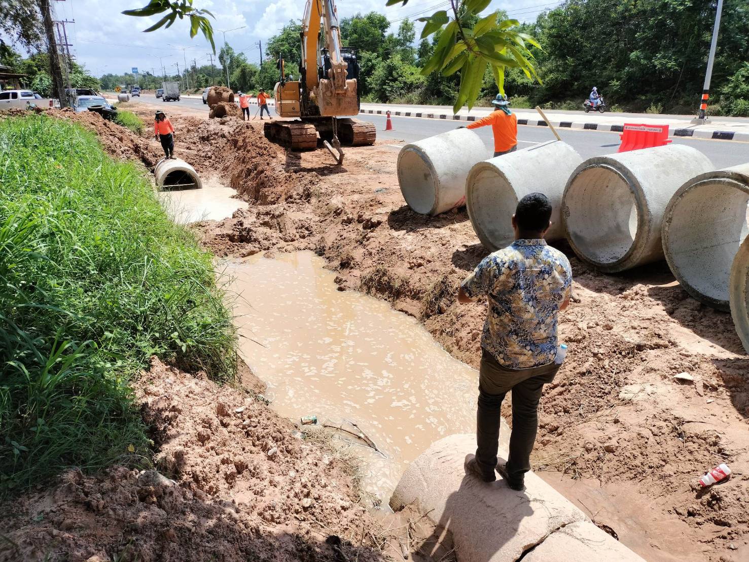 705 21/06/2566 "ร่วมลงพื้นที่ตรวจสอบแนะนำการปฏิบัติงานแก่ผู้ปฏิบัติงาน การแก้ไข้ปัญหาระบบระบายน้ำสองข้างทาง โดยได้มีการขุดลอกระบายน้ำและได้ทำการวางท่อระบายน้ำขนาด 1.00 เมตร ทล.2044 ตอน หนองดง - โพนทอง ที่กม.44+100 ถึง กม.44+500 ด้านขวาทาง (ศูนย์คูโบต้า/ปากทางเข้าบ้านขมิ้น/ศูนย์ยันมาร์)"