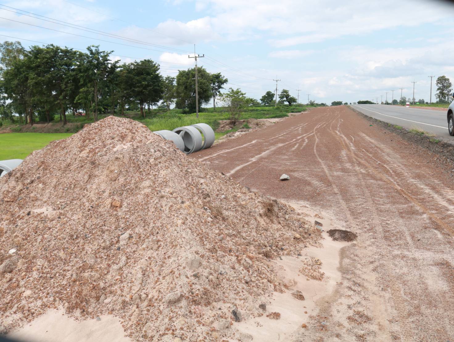 "ร่วมลงพื้นที่ตรวจสอบแนะนำการปฏิบัติงาน ตรวจสอบกายภาพทางหลวง เพื่อที่จะวางท่อระบายน้ำ ตามสัญญา รอ.37/2566 ทล.2044 ตอน หนองดง - ร้อยเอ็ด ระหว่าง กม.46+338 - กม.47+861"