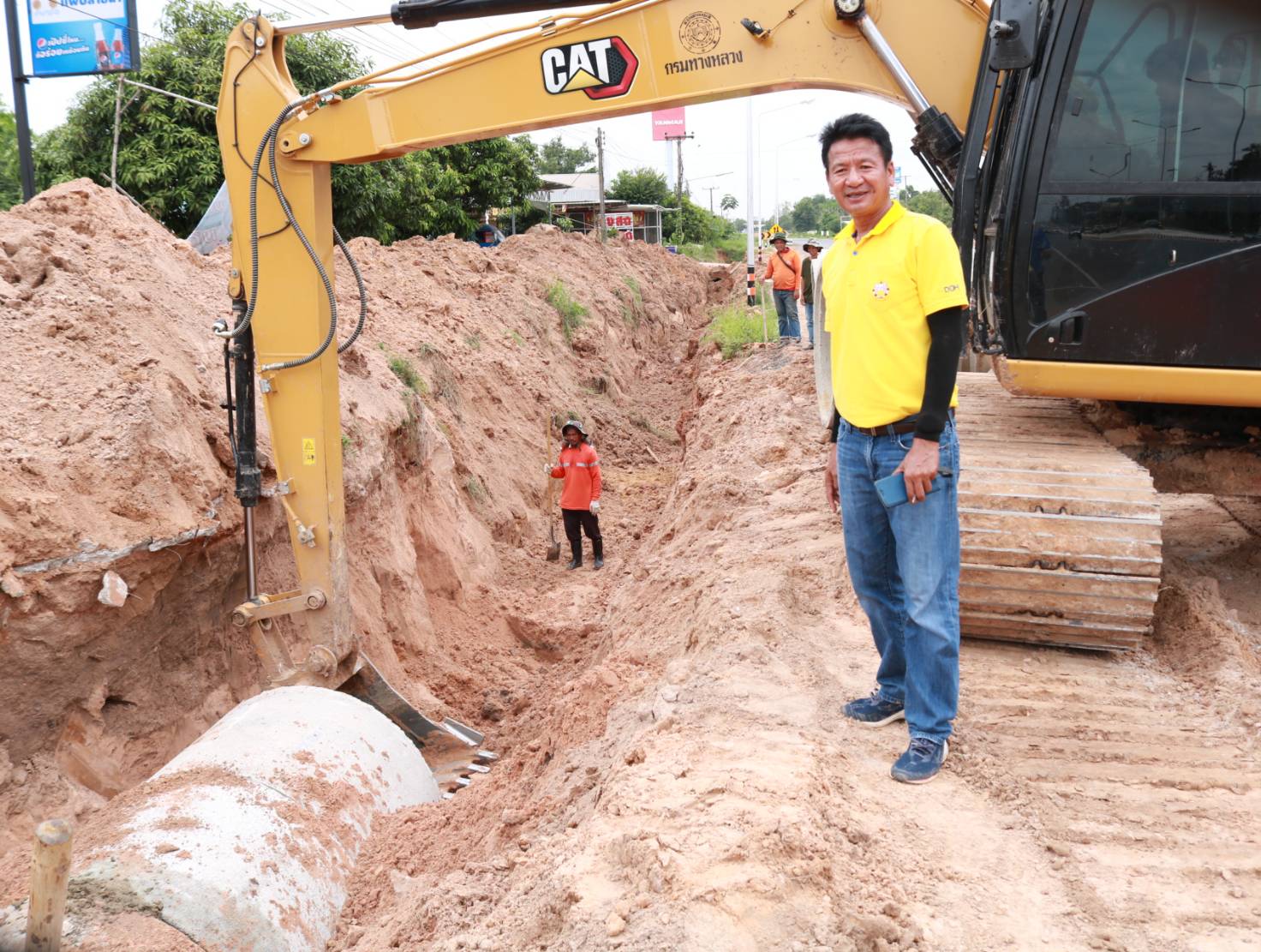 "ร่วมลงพื้นที่ตรวจสอบแนะนำการปฏิบัติงาน แก้ไขปัญหาเรื่องระบบระบายน้ำสองข้างทาง โดยการขุดลอกระบายน้ำและวางท่อระบายน้ำ ทล.2044 ตอน หนองดง - โพนทอง ที่กม.44+100 ด้านขวาทาง (แพปลายน้ำ/ศูนย์ยันมาร์)"