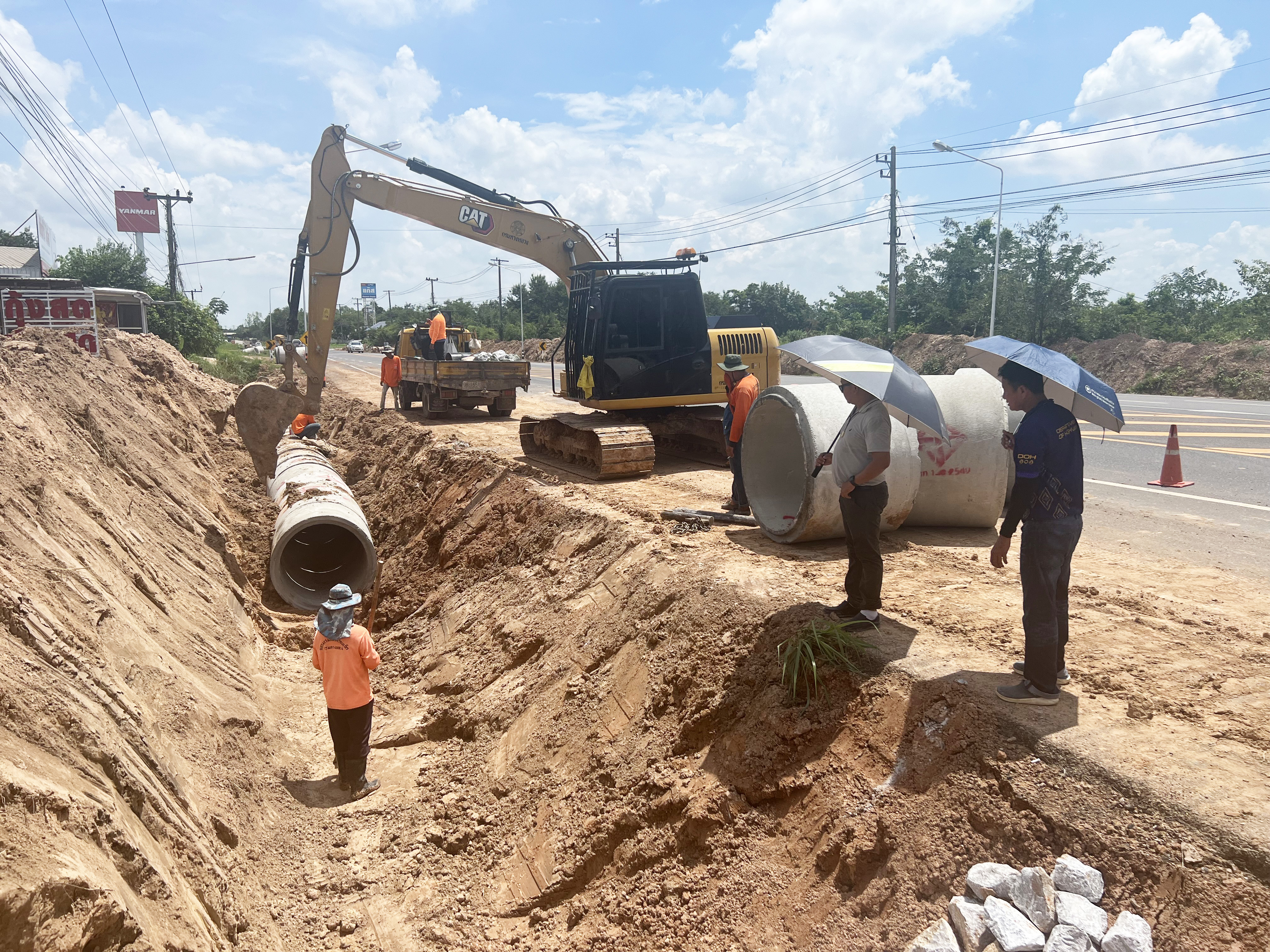 "ลงพื้นที่แนะนำการปฏิบัติงานการวางท่อระบายน้ำ Cross Drain อย่างมีประสิทธิภาพ ตามสัญญา รอ.36/2566 ทล.2116 ตอน ร่องคำ - โพนทอง ระหว่าง กม.54+150 - กม.56+000"
