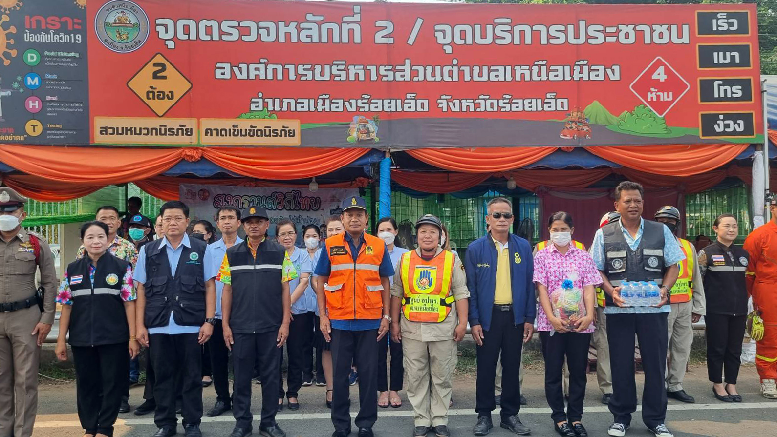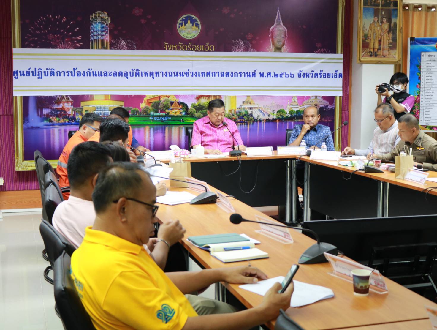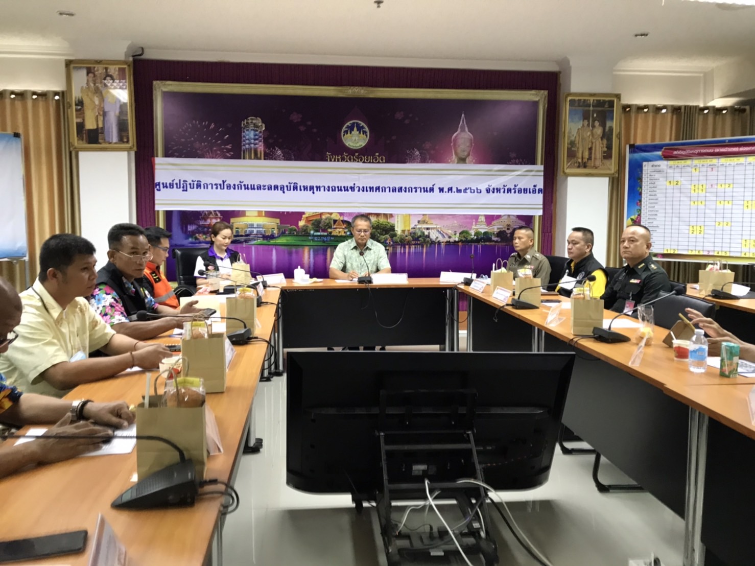 "ร่วมออกตรวจเยี่ยมประเมินผลการปฏิบัติงานประจำจุดตรวจในการป้องกันและลดอุบัติเหตุทางถนน ช่วงเทศกาลสงกรานต์ พ.ศ. 2566 จังหวัดร้อยเอ็ด"