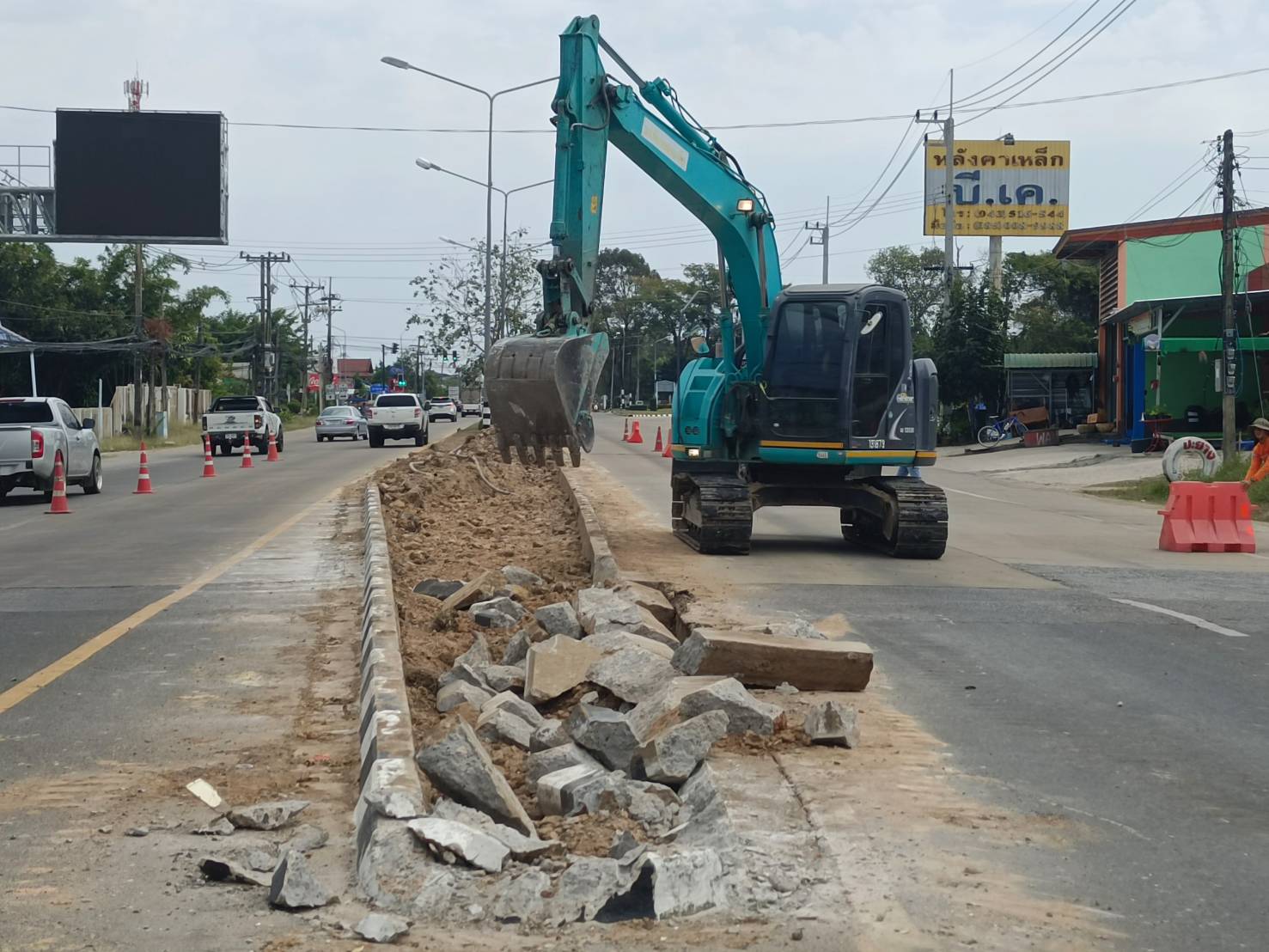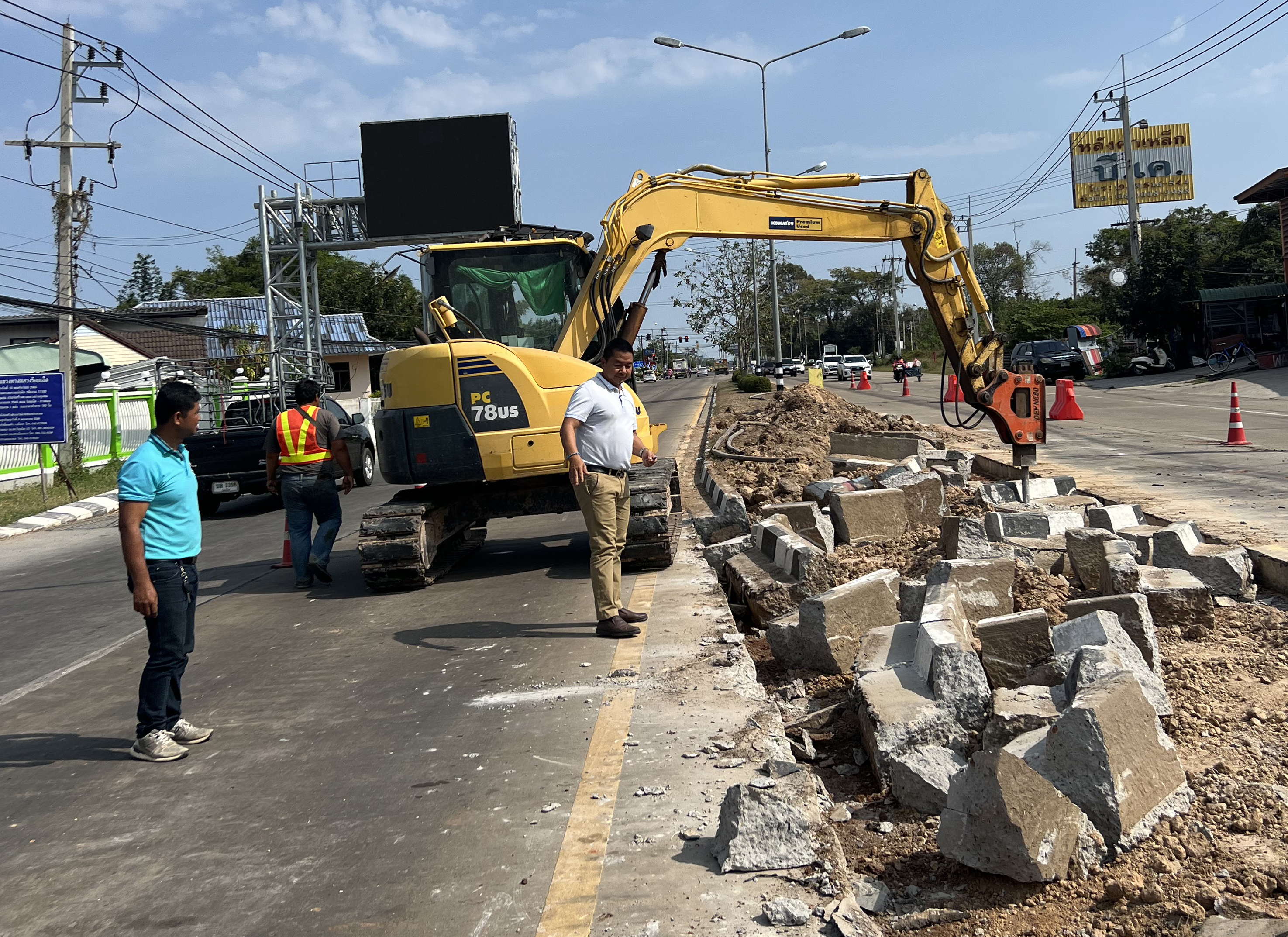 "ร่วมลงพื้นที่ตรวจสอบ แนะนำการปฏิบัติงานแนะนำการปฏิบัติงาน การปรับปรุงจุดเสี่ยงในทางหลวงบริเวณหัวเกาะ ทล.2043 ตอน ร้อยเอ็ด - ยางเฌอ ที่กม.2+400 (ตรงทางเข้าออก สหกรณ์สาธารณสุขจังหวัดร้อยเอ็ด)"