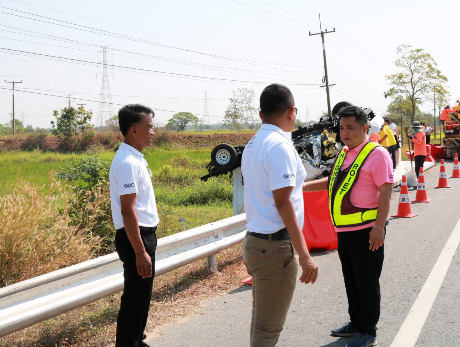 "ร่วมลงพื้นที่ออกสำรวจกายภาพทางหลวงเพื่อวิเคราะห์ปัญหาและหาสาเหตุของการเกิดอุบัติเหตุรถชนคอสะพาน ทล.23 ตอน ห้วยแอ่ง - ร้อยเอ็ด ที่กม.90+030"