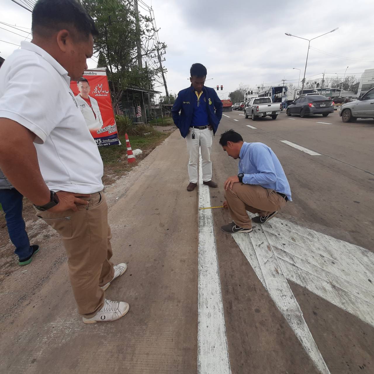 "ร่วมลงพื้นที่สำรวจติดตาม และแนะนำการปฏิบัติงาน ตามสัญญาเลขที่ รอ.16/2566 งานปรับปรุงการแบ่งทิศทางการจราจรเพื่อความปลอดภัย ทล.215 ตอน ร้อยเอ็ด - สุวรรณภูมิ ระหว่าง กม.25+800 - กม 27+450"