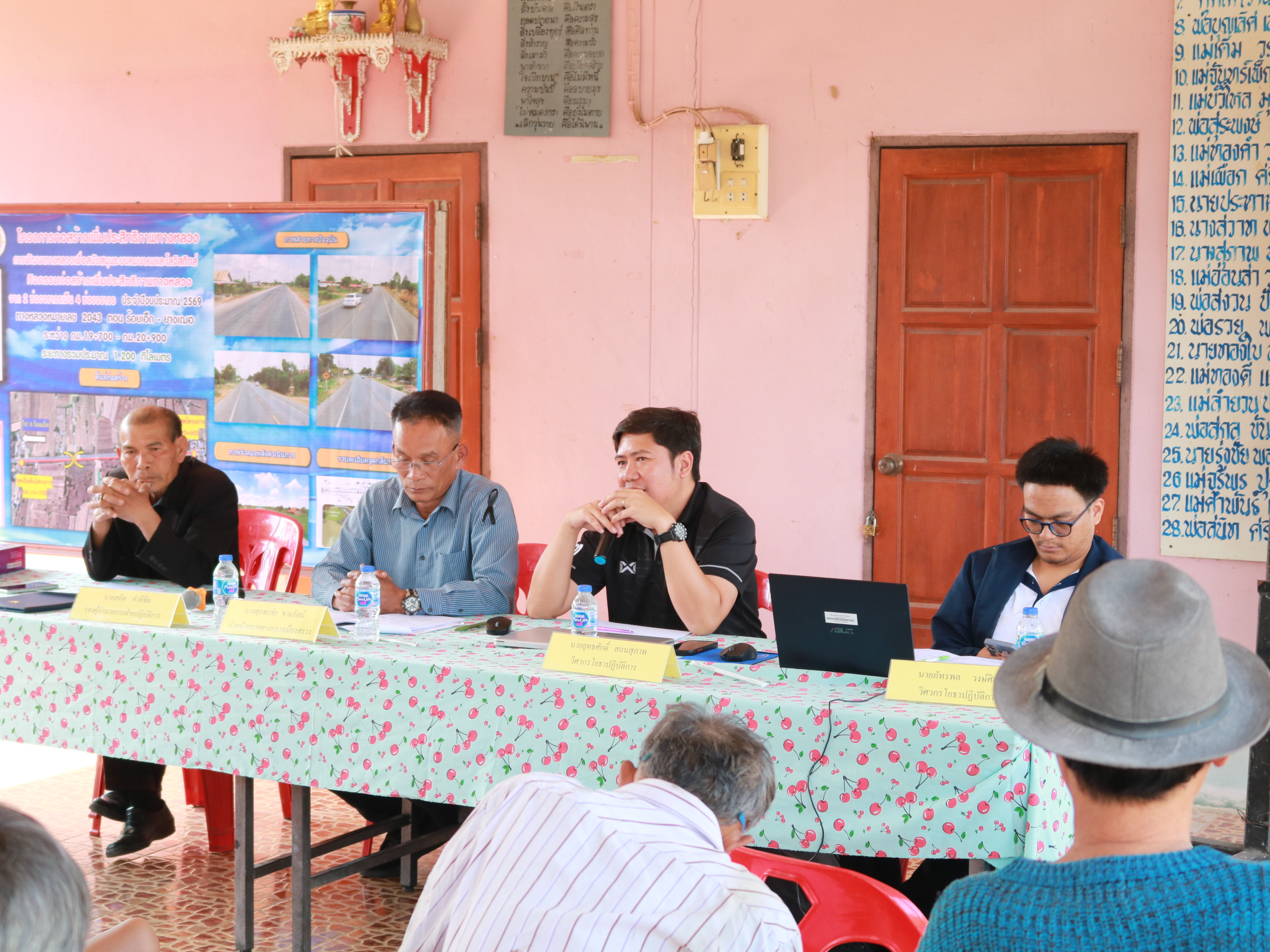 “ร่วมประชุมการมีส่วนร่วมของประชาชน เพื่อรับฟังความคิดเห็นของทุกภาคส่วน ในการดำเนินงานก่อสร้าง โครงการก่อสร้างโครงข่ายทางหลวงแผ่นดิน กิจกรรมก่อสร้างทางหลวงผ่านย่านชุมชน ทางหลวงหมายเลข 2046 ตอน เสลภูมิ - บ้านงิ้ว ระหว่าง กม.0+000 - กม.0+974”