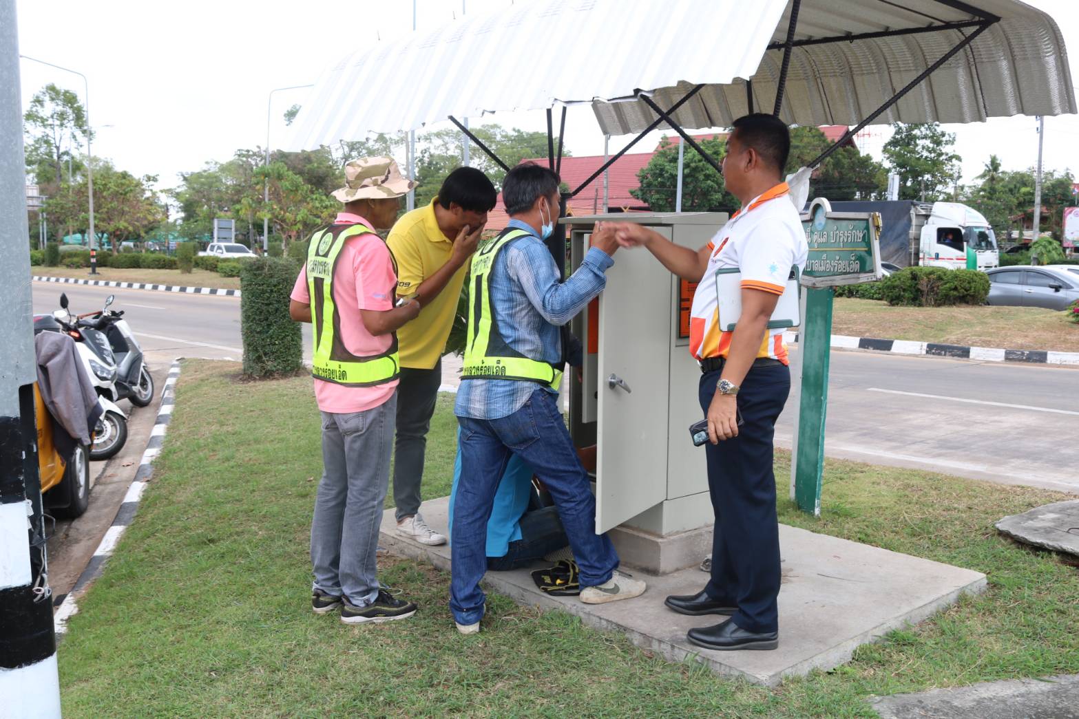 "ร่วมลงพื้นที่สำรวจย้ายเสาไฟฟ้าแสงสว่าง และปรับปรุง ทางเข้า - ออก สำนักงานแขวงทางหลวงร้อยเอ็ด"