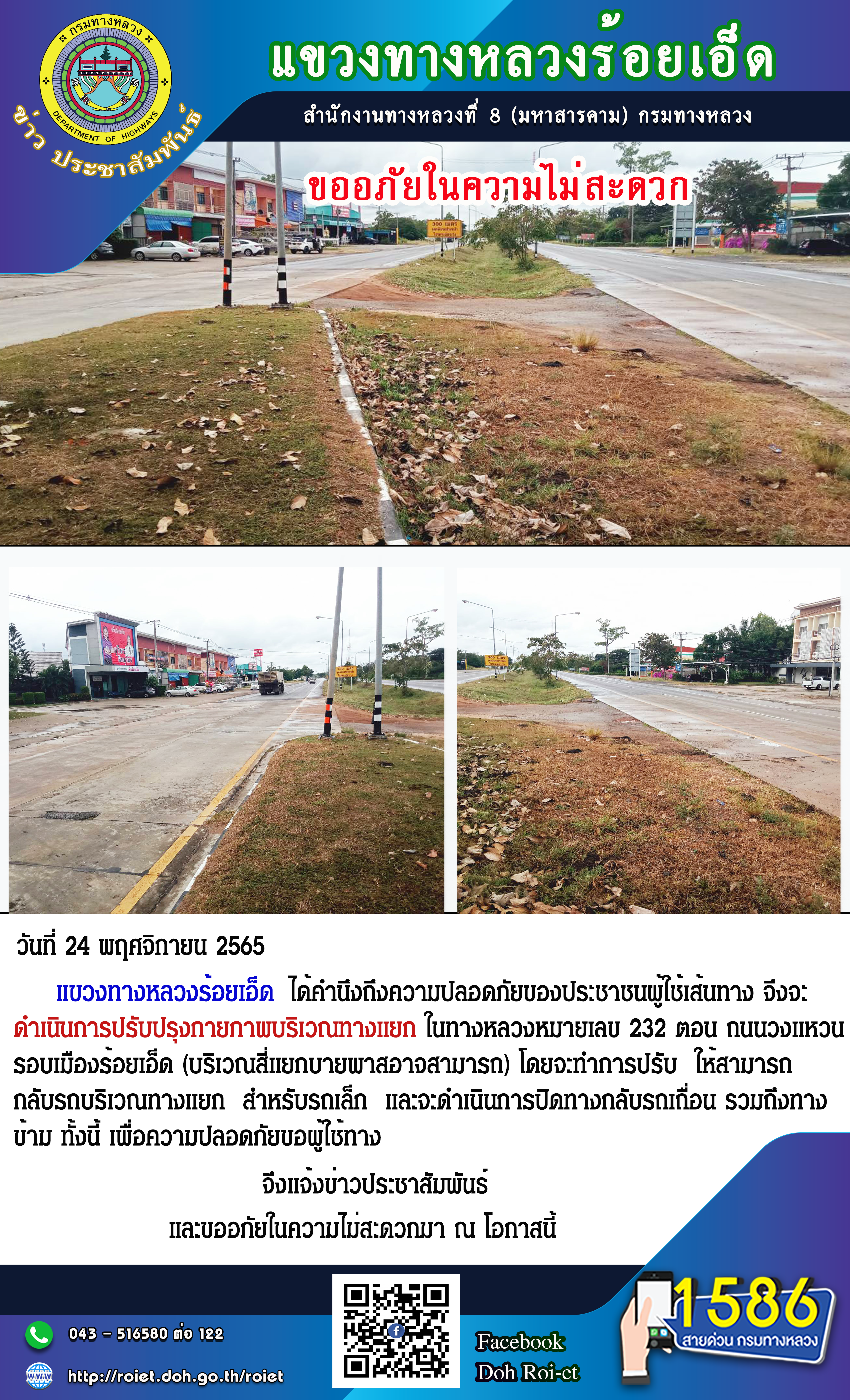 ปรับปรุงกายภาพบริเวณทางแยก ในทางหลวงหมายเลข 232 ตอน ถนนวงแหวนรอบเมืองร้อยเอ็ด (บริเวณสี่แยกบายพาสอาจสามารถ)