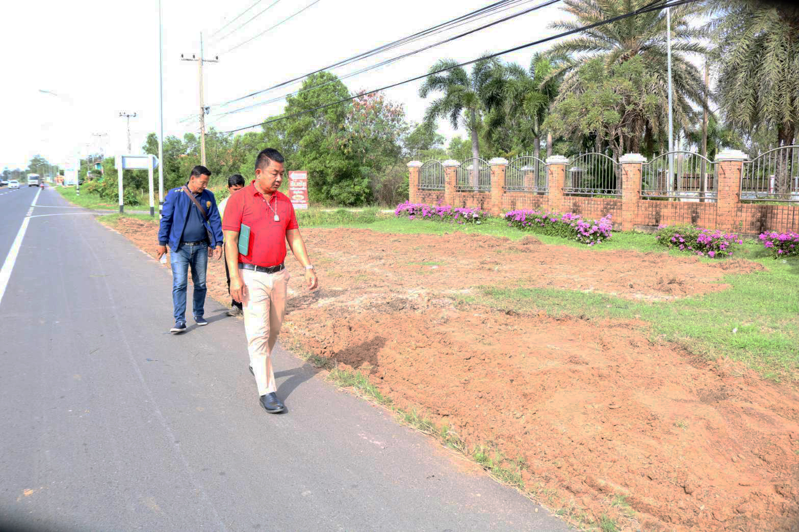 "สำรวจพื้นที่เพื่อจะดำเนินการปรับปรุงภูมิทัศน์ บริเวณหน้าสำนักงานแขวงทางหลวงร้อยเอ็ด ทล.2044 ที่กม.6+735"