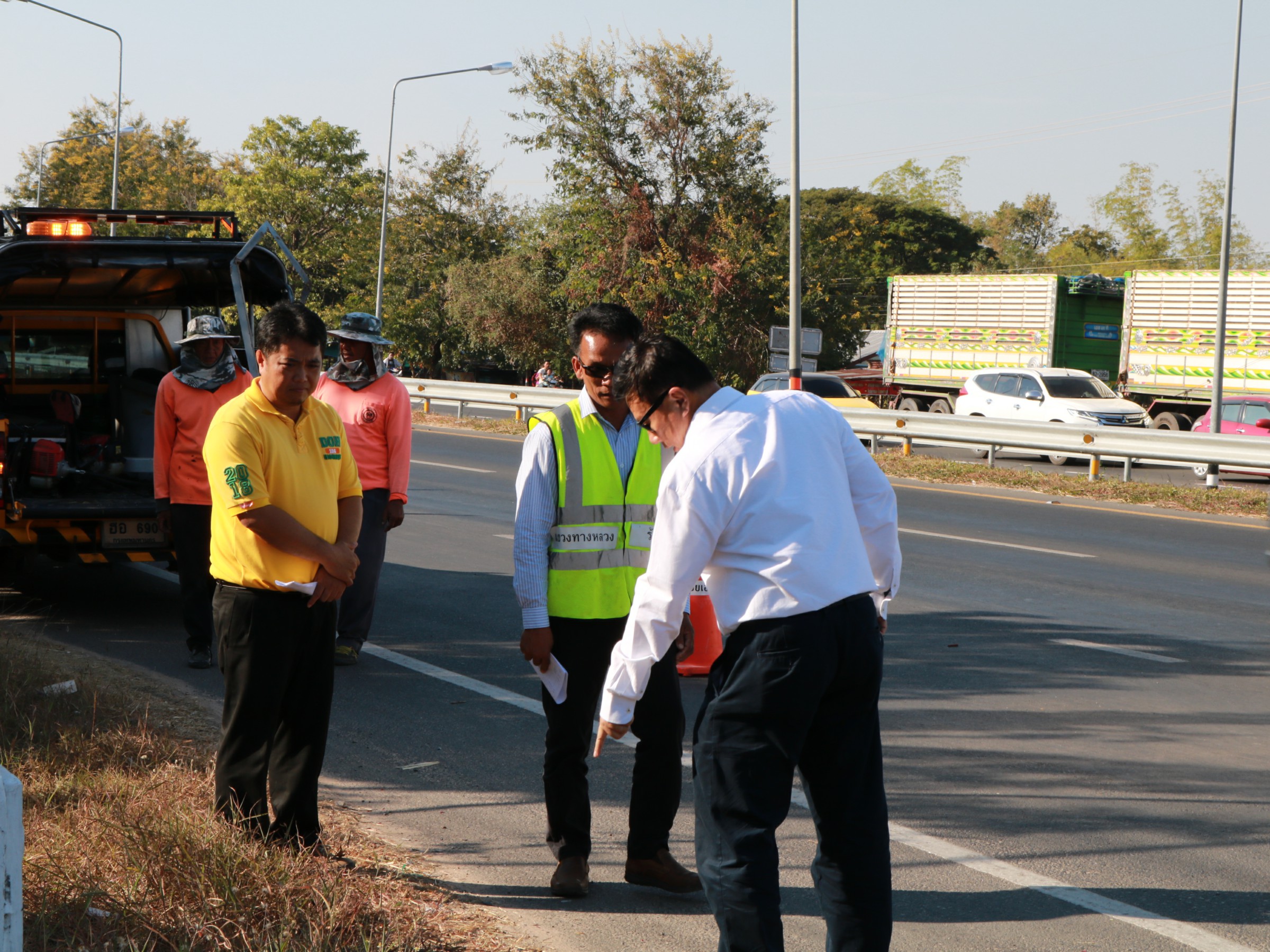 ลงพื้นที่ตรวจสอบจุดที่เกิดอุบัติเหตุ จุดเสี่ยง ในทางหลวงหมายเลข 23 ตอน ห้วยแอ่ง - ร้อยเอ็ด ที่ กม.103+000 และ ที่ กม.92+000