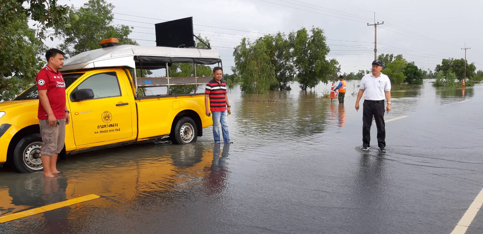 "ลงพื้นที่ตรวจสอบสถานการณ์น้ำท่วมสายทาง"