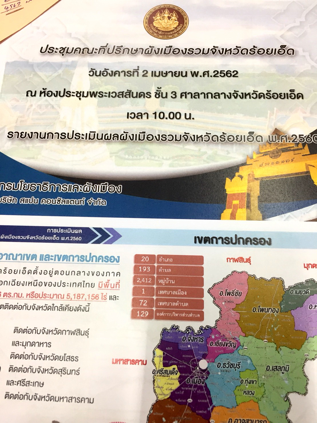 ประชุมหัวหน้าส่วนราชการ และนายอำเภอ จังหวัดร้อยเอ็ด ประจำเดือนมีนาคม 2562 (ครั้งที่ 3/2562)