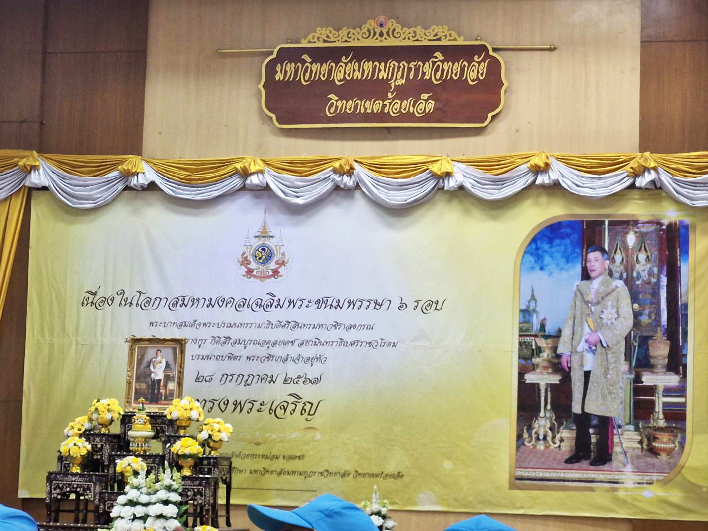 นายวุฒิพงศ์ คำภูแสน ผู้อำนวยการแขวงทางหลวงร้อยเอ็ด มอบหมายให้นายธนานันต์ นิลผาย นายช่างโยธาชำนาญงาน พร้อมด้วยเจ้าหน้าที่หมวดทางหลวงอาวุโสร้อยเอ็ด เข้าร่วมกิจกรรมจิตอาสาพัฒนาทำความสะอาดและปลูกต้นไม้ เพื่อถวายพระราชกุศล เนื่องในโอกาสวันคล้ายวันพระบรมราชสมภพ พระบาทสมเด็จพระเจ้าอยู่หัว ณ ลานเอนกประสงค์ มหาวิทยาลัยมหามกุฏราชวิทยาลัย วิทยาเขตร้อยเอ็ด และวัดศรีทองไพบูลย์วราราม ถนนเลี่ยงเมือง ตำบลดงลาน อำเภอเมืองร้อยเอ็ด จังหวัดร้อยเอ็ด