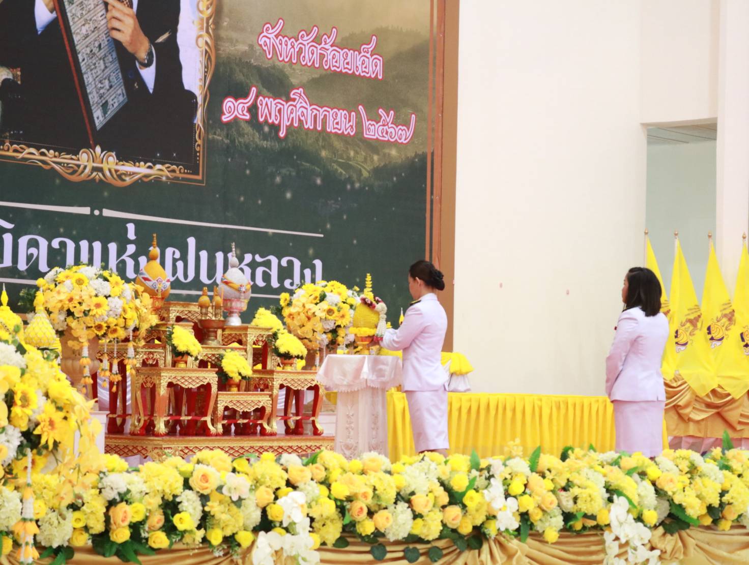 นายวุฒิพงศ์ คำภูแสน ผู้อำนวยการแขวงทางหลวงร้อยเอ็ด มอบหมายให้ข้าราชการ เจ้าหน้าที่แขวงทางหลวงร้อยเอ็ด เข้าร่วมพิธีถวายราชสักการะวางพานพุ่มดอกไม้สด เนื่องในวันพระบิดาแห่งฝนหลวง ประจำปี 2567 เพื่อน้อมรำลึกในพระมหากรุณาธิคุณของพระบาทสมเด็จพระบรมชนกาธิเบศร มหาภูมิพลอดุลยเดชมหาราช บรมนาถบพิตร โดยมีนายชัชวาล เบญจสิริวงศ์ รองผู้ว่าราชการจังหวัดร้อยเอ็ด เป็นประธานในพิธี ณ หอประชุมจังหวัดร้อยเอ็ด (ชั้น 2) อำเภอเมืองร้อยเอ็ด จังหวัดร้อยเอ็ด