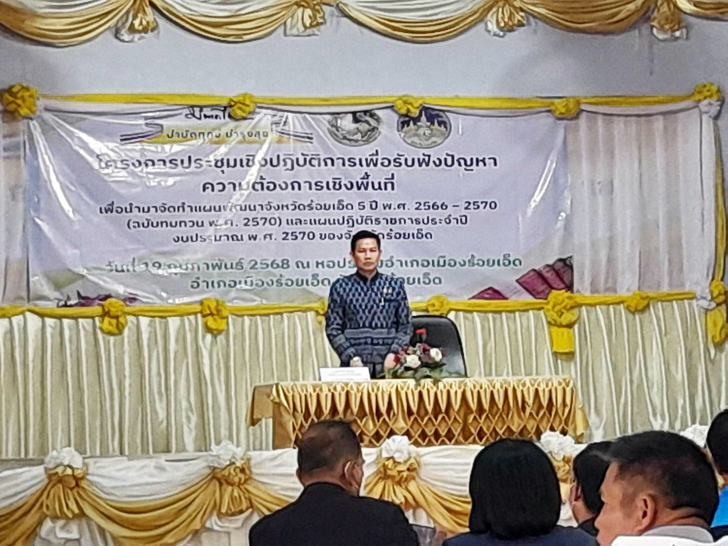 “เข้าร่วมประชุมเชิงปฏิบัติการเพื่อรับฟังปัญหาความต้องการเชิงพื้นที่ เพื่อนำมาจัดทำแผนพัฒนาจังหวัดร้อยเอ็ด 5 ปี พ.ศ. 2566 – 2570 (ฉบับทบทวน พ.ศ. 2570) และแผนปฏิบัติราชการประจำปีงบประมาณ พ.ศ. 2570 ของจังหวัดร้อยเอ็ด”