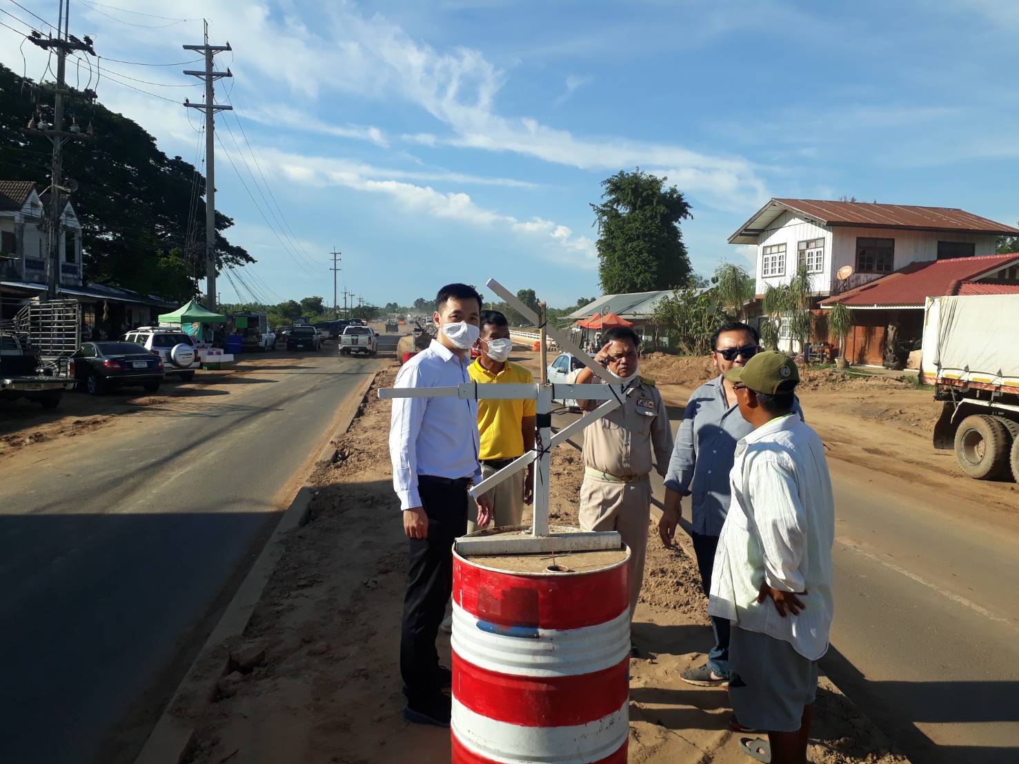 นายเกียรติพงษ์ เจียรนัยธนะกิจ ผู้อำนวยการแขวงทางหลวงร้อยเอ็ด พร้อมด้วยนายสมัย คะนะมะ รองผู้อำนวยการแขวงทางหลวงร้อยเอ็ด ฝ่ายวิศวกรรม ,นายสถิต คำพิชิต รองผู้อำนวยการแขวงทางหลวงร้อยเอ็ด ฝ่ายปฏิบัติการ ร่วมตรวจงานก่อสร้าง งานจ้างเหมาโครงการพัฒนาโครงข่ายคมนาคมขนส่ง กิจกรรมพัฒนาระบบขนส่งทางบก งานขยายถนนจาก 2 ช่องจราจรเป็น 4 ช่องจราจร ตำบลธงธานี อำเภอธวัชบุรี จังหวัดร้อยเอ็ด ในทางหลวงหมายเลข 2044 ตอน ร้อยเอ็ด - หนองดง ระหว่าง กม.20+000 - กม.22+500 โดยมี ห้างหุ้นส่วนจำกัด ที เอ พี 101 เป็นผู้รับจ้าง