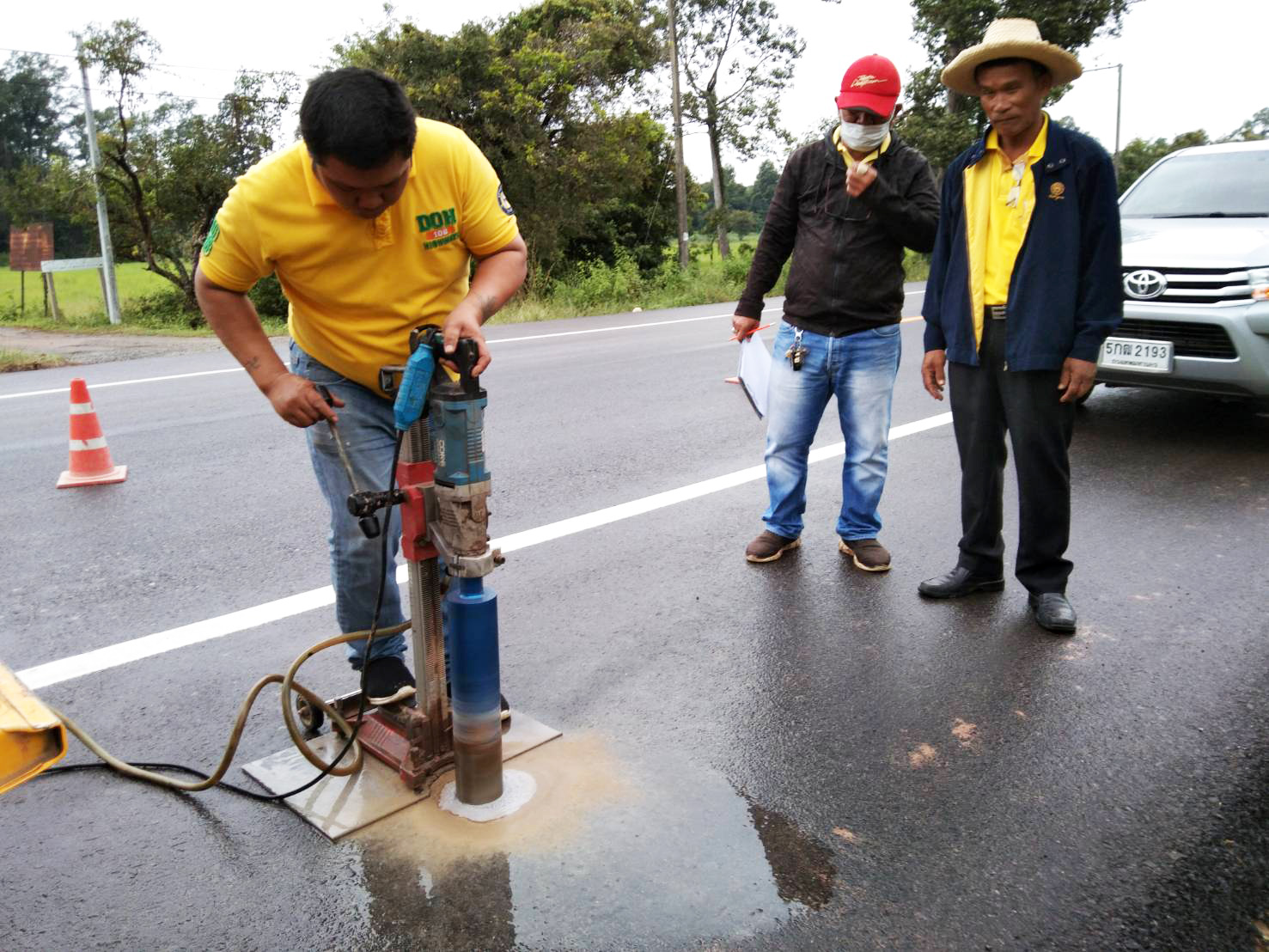 ตรวจรับงานก่อสร้าง งานจ้างเหมาเสริมผิวแอสฟัลต์ ในทางหลวงหมายเลข 215