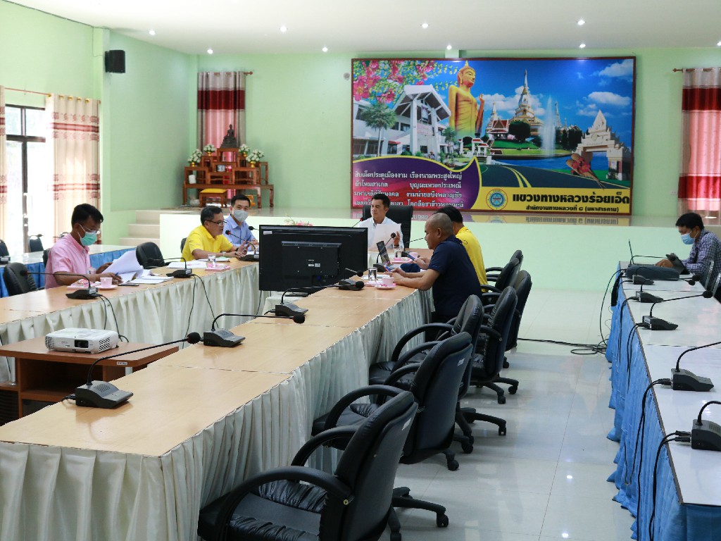 นายปรัชญา นารถน้ำพอง รองผู้อำนวยการสำนักงานทางหลวงที่ 8 ตำแหน่งที่ 2 ประธานกรรมการตรวจรับพัสดุ ,นายเกียรติพงษ์ เจียรนัยธนะกิจ ผู้อำนวยการแขวงทางหลวงร้อยเอ็ด พร้อมด้วยคณะกรรมการตรวจรับพัสดุ ,ผู้ควบคุมงาน และบริษัท บัวขาวเฟอร์นิเจอร์ จำกัด ผู้รับจ้าง ร่วมประชุมหารือแนวทางการก่อสร้าง งานจ้างเหมาโครงการยกระดับความปลอดภัยบริเวณทางแยกขนาดใหญ่ ทางหลวงหมายเลข 2116 ตอน ร่องคำ - โพนทอง ที่กม.70+667 ณ ห้องประชุมจุลละโพธิ แขวงทางหลวงร้อยเอ็ด