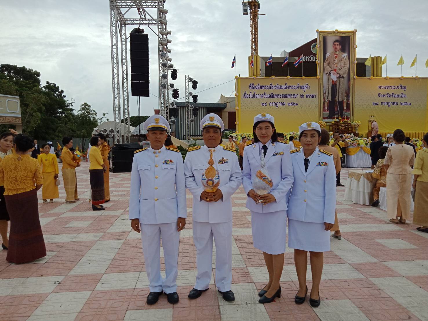 นายพงศกร จุลละโพธิ ผู้อำนวยการแขวงทางหลวงร้อยเอ็ด มอบหมายให้ คณะข้าราชการแขวงทางหลวงร้อยเอ็ด ร่วมพิธีถวายเครื่องราชสักการะ จุดเทียนถวายพระพรชัยมงคล เนื่องในโอกาสวันเฉลิมพระชนมพรรษา 66 พรรษา สมเด็จพระเจ้าอยู่หัวมหาวชิราลงกรณ บดินทรเทพยวรางกูร 28 กรกฎาคม 2561 ณ ลานสาเกตนคร สวนสมเด็จพระศรีนครินทร์ร้อยเอ็ด อำเภอเมืองร้อยเอ็ด จังหวัดร้อยเอ็ด