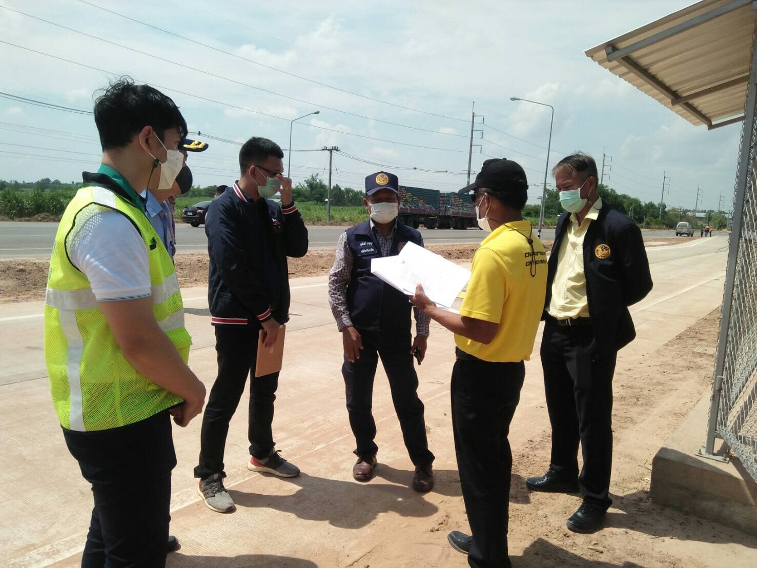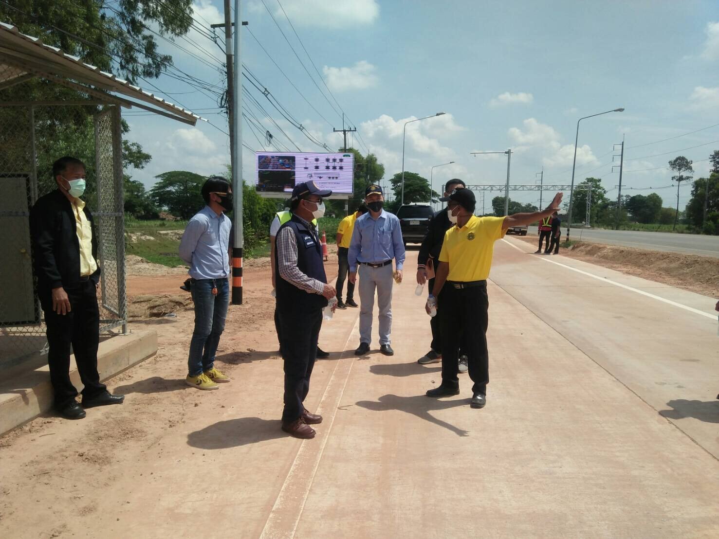 นายชูศักดิ์ ราชบุรี ปลัดจังหวัดร้อยเอ็ด ประธานกรรมการตรวจการจ้าง ,นายเกียรติพงษ์ เจียรนัยธนะกิจ ผู้อำนวยการแขวงทางหลวงร้อยเอ็ด พร้อมด้วยคณะกรรมการฯ ร่วมตรวจรับงานก่อสร้าง โครงการเสริมสร้างความปลอดภัยบนถนนทางหลวง เพื่อให้ประชาชนเดินทางปลอดภัย ในทางหลวงหมายเลข 2046 ตอน บ้านงิ้ว - ลำน้ายัง (งานก่อสร้างจุด Check Point สำหรับตรวจวัดน้ำหนักรถบรรทุก) โดยมีบริษัท วิจิตรศิริ เอ็นจิเนียริ่ง จำกัด เป็นผู้รับจ้าง
