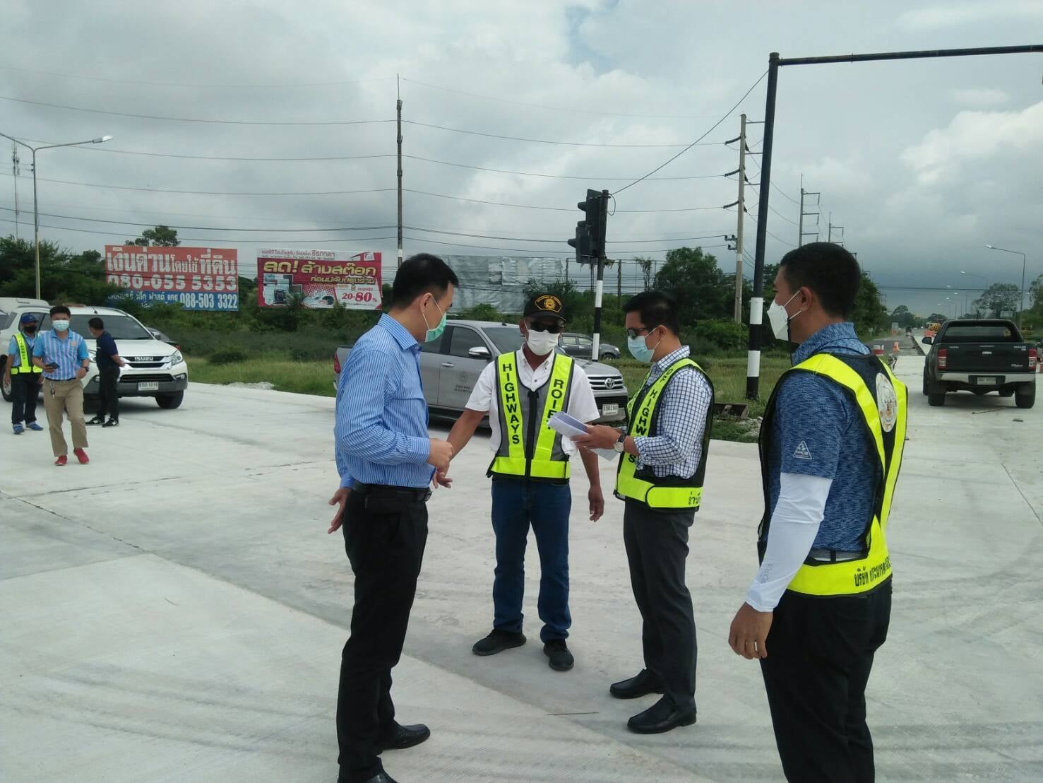 นายปรัชญา นารถน้ำพอง รองผู้อำนวยการสำนักงานทางหลวงที่ 8 (มหาสารคาม) ตำแหน่งที่ 2 ประธานกรรมการตรวจการจ้าง ,นายเกียรติพงษ์ เจียรนัยธนะกิจ ผู้อำนวยการแขวงทางหลวงร้อยเอ็ด พร้อมด้วยคณะกรรมการฯ ร่วมตรวจงานก่อสร้าง โครงการยกระดับความปลอดภัยบริเวณทางแยกขนาดใหญ่ ในทางหลวงหมายเลข 232 ตอน ถนนวงแหวนรอบเมืองร้อยเอ็ด ที่ กม.12+502 (แยกบายพาสโพนทอง) งวดที่ 1 โดยมี บริษัท สินทรัพย์อนันต์ จำกัด เป็นผู้รับจ้าง