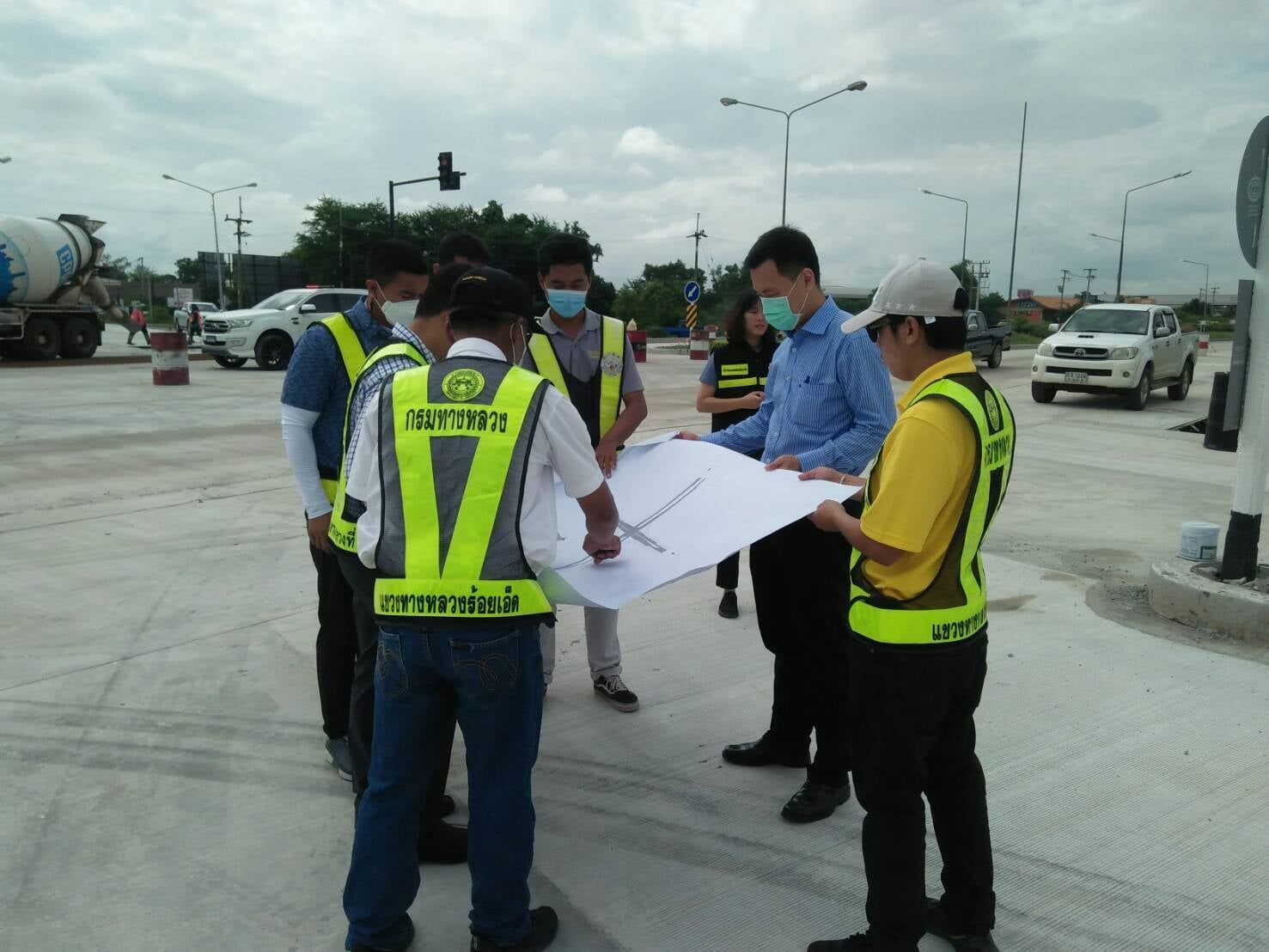"ร่วมตรวจงานก่อสร้าง งวดที่ 1 โครงการยกระดับความปลอดภัยบริเวณทางแยกขนาดใหญ่ ทล. 232 ตอน ถนนวงแหวนรอบเมืองร้อยเอ็ด ที่กม.12+502 (แยกบายพาสโพนทอง)"
