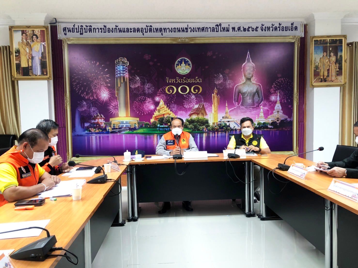 นายชูศักดิ์ ราชบุรี ปลัดจังหวัดร้อยเอ็ด ร่วมกับนายสมัย คะนะมะ รองผู้อำนวยการแขวงทางหลวงร้อยเอ็ด ฝ่ายวิศวกรรม ร่วมประชุมและแถลงข่าวสรุปผลการดำเนินการป้องกันและลดอุบัติเหตุทางถนนช่วงเทศกาลปีใหม่ พ.ศ. 2565 (ระหว่างวันที่ 29 ธ.ค. 64 - 4 ม.ค. 65) ประจำวันที่ 3 มกราคม 2565 ณ ศูนย์ปฏิบัติการป้องกันและลดอุบัติเหตุทางถนนช่วงเทศกาลปีใหม่ พ.ศ. 2565 จังหวัดร้อยเอ็ด ห้องประชุมพระเวสสันดร ชั้น 3 ศาลากลางจังหวัดร้อยเอ็ด
