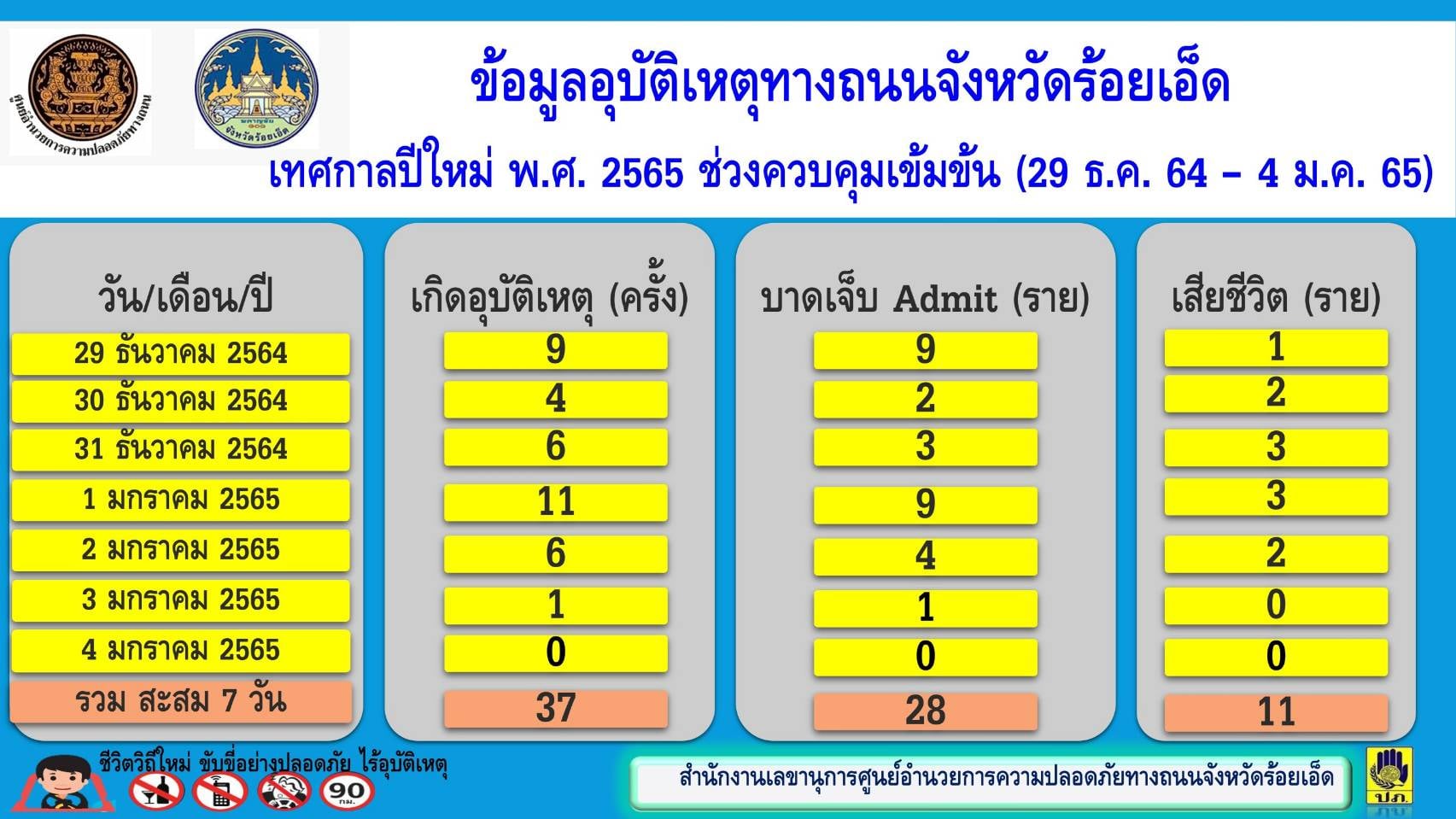 นายเกียรติพงษ์ เจียรนัยธนะกิจ ผู้อำนวยการแขวงทางหลวงร้อยเอ็ด เข้าร่วมประชุมและแถลงข่าวสรุปผลการดำเนินการป้องกันและลดอุบัติเหตุทางถนนช่วงเทศกาลปีใหม่ พ.ศ. 2565 ช่วงควบคุมเข้มข้น (ระหว่างวันที่ 29 ธ.ค. 64 – 4 ม.ค. 65) ร่วมกับหัวหน้าส่วนราชการในจังหวัดร้อยเอ็ด โดยมีนายภูสิต สมจิตต์ ผู้ว่าราชการจังหวัดร้อยเอ็ด เป็นประธานในการแถลงข่าวฯ ณ ห้องประชุมข้าวหอมมะลิ ชั้น 4 ศาลากลางจังหวัดร้อยเอ็ด