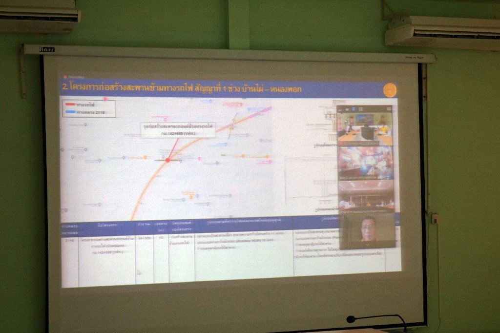 นายสมัย คะนะมะ รองอำนวยการฝ่ายวิศวกรรม ,นายสถิต คำพิชิต รองผู้อำนวยการฝ่ายปฏิบัติการ และนางรฐา ชำนาญยงค์ รองผู้อำนวยการฝ่ายบริหาร แขวงทางหลวงร้อยเอ็ด เข้าร่วมประชุม เรื่องการขออนุญาตใช้พื้นที่กรมทางหลวง เพื่อก่อสร้างสะพานข้ามทางรถไฟ บนพื้นที่ของกรมทางหลวง ผ่านสื่ออิเล็กทรอนิกส์ (Zoom Cloud Meeting) ณ ห้องประชุมจุลละโพธิ แขวงทางหลวงร้อยเอ็ด