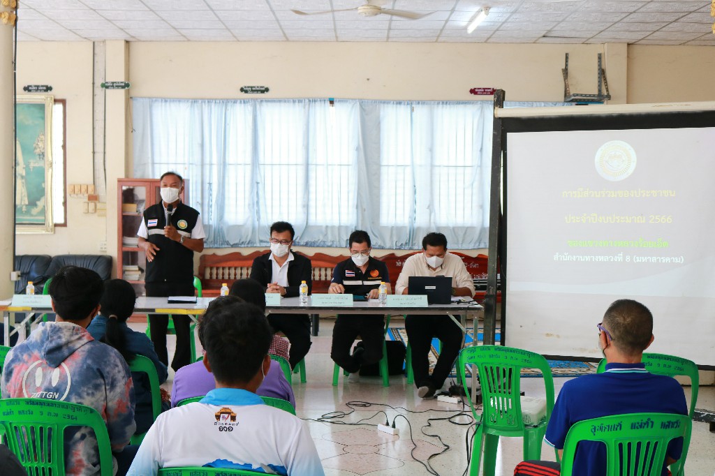 นายศราวุฒิ ภู่ชินาพันธ์ ผู้อำนวยการแขวงทางหลวงร้อยเอ็ด พร้อมด้วยคณะเจ้าหน้าที่แขวงทางหลวงร้อยเอ็ด และเจ้าหน้าที่จากส่วนสำรวจและออกแบบ สำนักงานทางหลวงที่ 8 (มหาสารคาม) ร่วมประชุมการมีส่วนร่วมของประชาชน เพื่อรับฟังความคิดเห็นของทุกภาคส่วน ในการดำเนินงานก่อสร้าง ในทางหลวงหมายเลข 2045 ตอน ร้อยเอ็ด – หนองคูโคก ระหว่าง กม.7+900 - กม.9+600 และระหว่าง กม.18+400 - กม.19+530 ณ ศาลาการเปรียญวัดบ้านหนองคู ตำบลขอนแก่น อำเภอเมือง และศาลาการเปรียญวัดสามัคคีธรรมหนองห่างน้อย ตำบลหนองแวงควง อำเภอศรีสมเด็จ จังหวัดร้อยเอ็ด