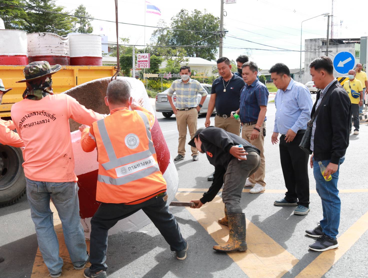 นายมงคล แสนวงษา ผู้อำนวยการแขวงทางหลวงร้อยเอ็ด พร้อมด้วยพ.ต.อ.ภูมี อีคะละ ผกก.สภ.จังหาร ,นายสมัย คะนะมะ รองผู้อำนวยการแขวงทางหลวงร้อยเอ็ด ฝ่ายวิศวกรรม ,นายณัฐพล เยี่ยมชัยภูมิ หัวหน้าหมวดทางหลวงร้อยเอ็ด ,นายพิทักษ์ ทาตะนาม หัวหน้าหมวดทางหลวงเกษตรวิสัย ,ว่าที่ รต.ธีระศักดิ์ ไค่นุ่นโพธิ์ หัวหน้าหมวดทางหลวงเสลภูมิและนายศุภพรชัย ขามรัตน์ หัวหน้าหมวดทางหลวงเมืองสรวง ร่วมลงพื้นที่สำรวจและวางแผนปรับปรุงจุดเสี่ยงเพื่อทำวงเวียนชั่วคราว ในทางหลวงหมายเลข 214 ตอน ลำชี - ร้อยเอ็ด ที่กม.37+625 (สามแยกเข้าอำเภอจังหาร) เพื่อความสะดวกและปลอดภัยแก่ผู้ใช้ทาง