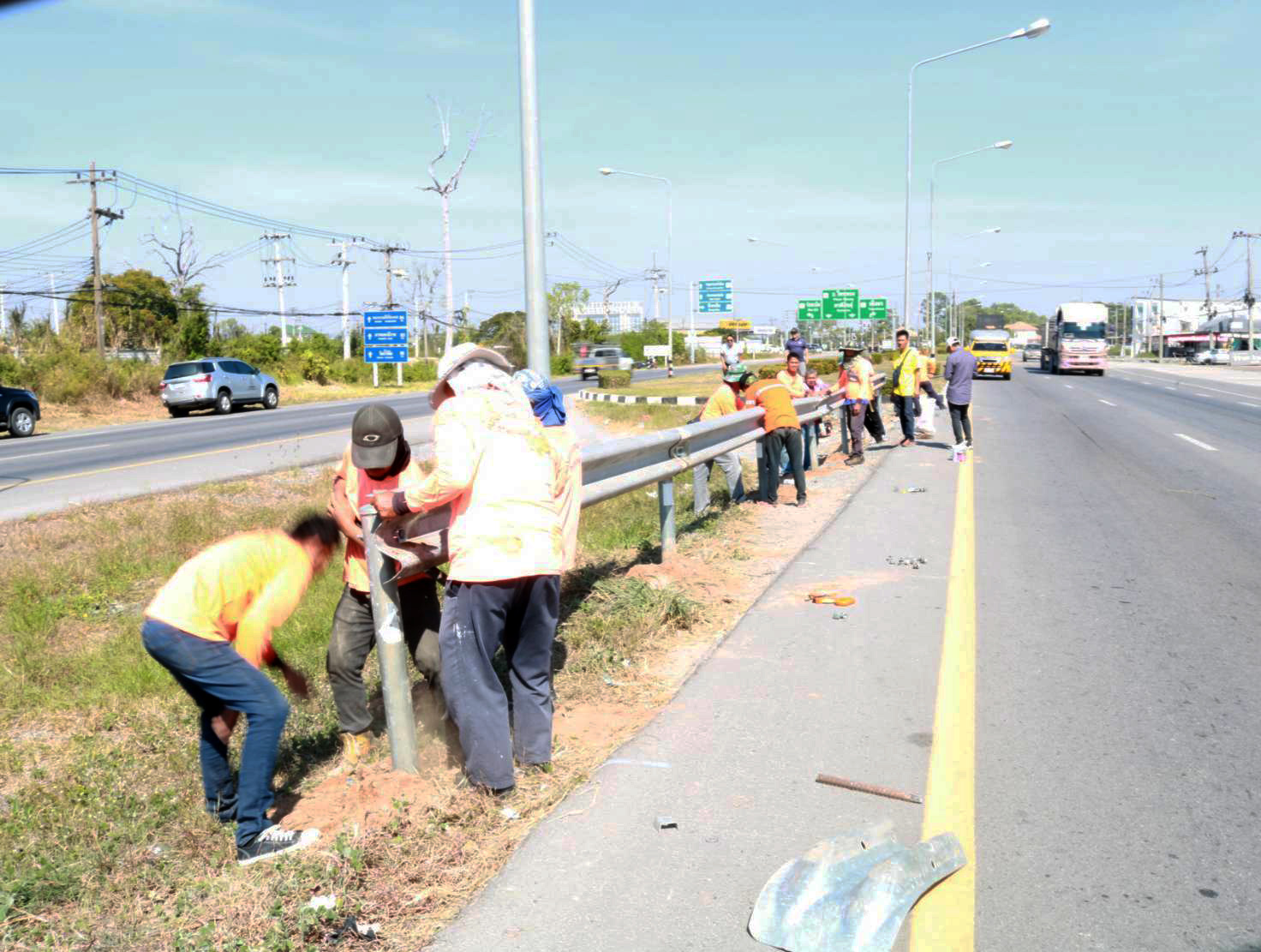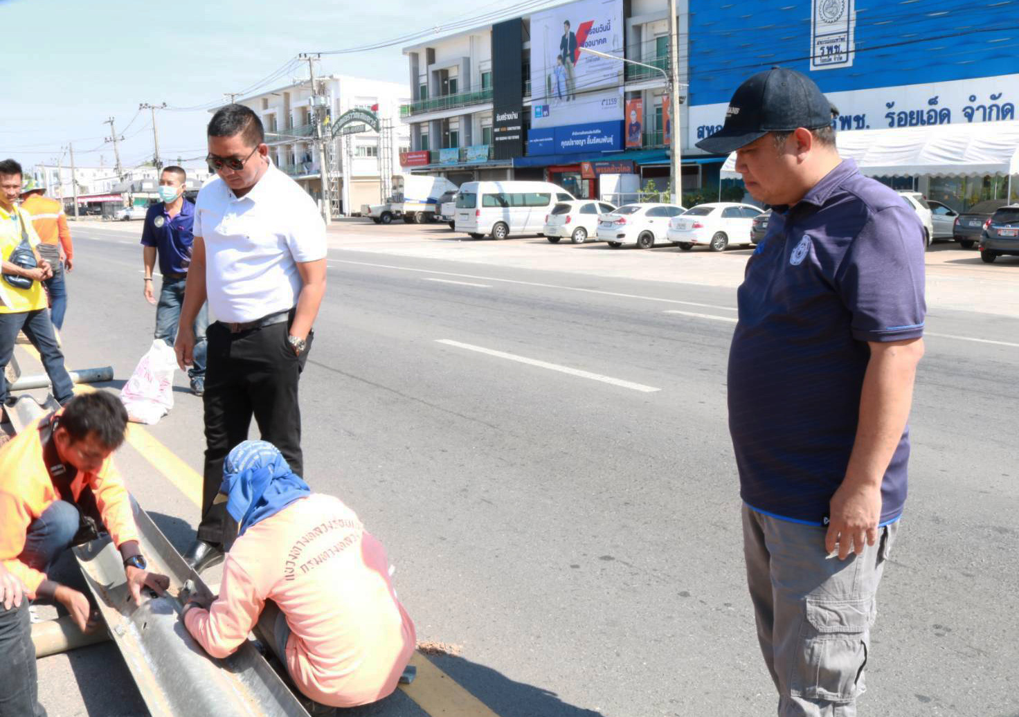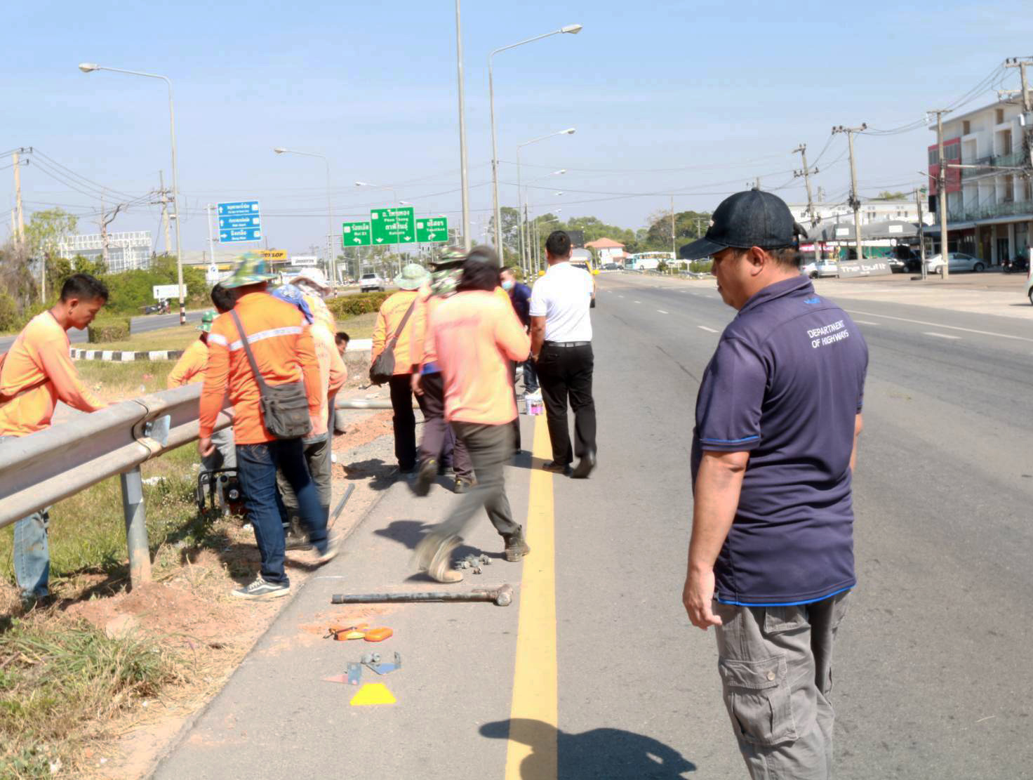 นายมงคล แสนวงษา ผู้อำนวยการแขวงทางหลวงร้อยเอ็ด พร้อมด้วยนายณัฐพล เยี่ยมชัยภูมิ หัวหน้าหมวดทางหลวงร้อยเอ็ด ร่วมลงพื้นที่ตรวจสอบแนะนำการปฏิบัติงานการปรับปรุงจุดเสี่ยง/จุดอันตรายจากทางลักข้ามจุดกลับรถเถื่อน “แนะนำการติดตั้งราวกันอันตราย Guard Rail อย่างมีประสิทธิภาพ” ในทางหลวงหมายเลข 232 ตอน ถนนวงแหวนรอบเมืองร้อยเอ็ด ด้านทิศใต้ ที่กม.15+950 (บริเวณจุดกลับรถเถื่อน หัวเกาะสี่แยกธวัชบุรี) เพื่อความปลอดภัยของผู้ใช้ทาง