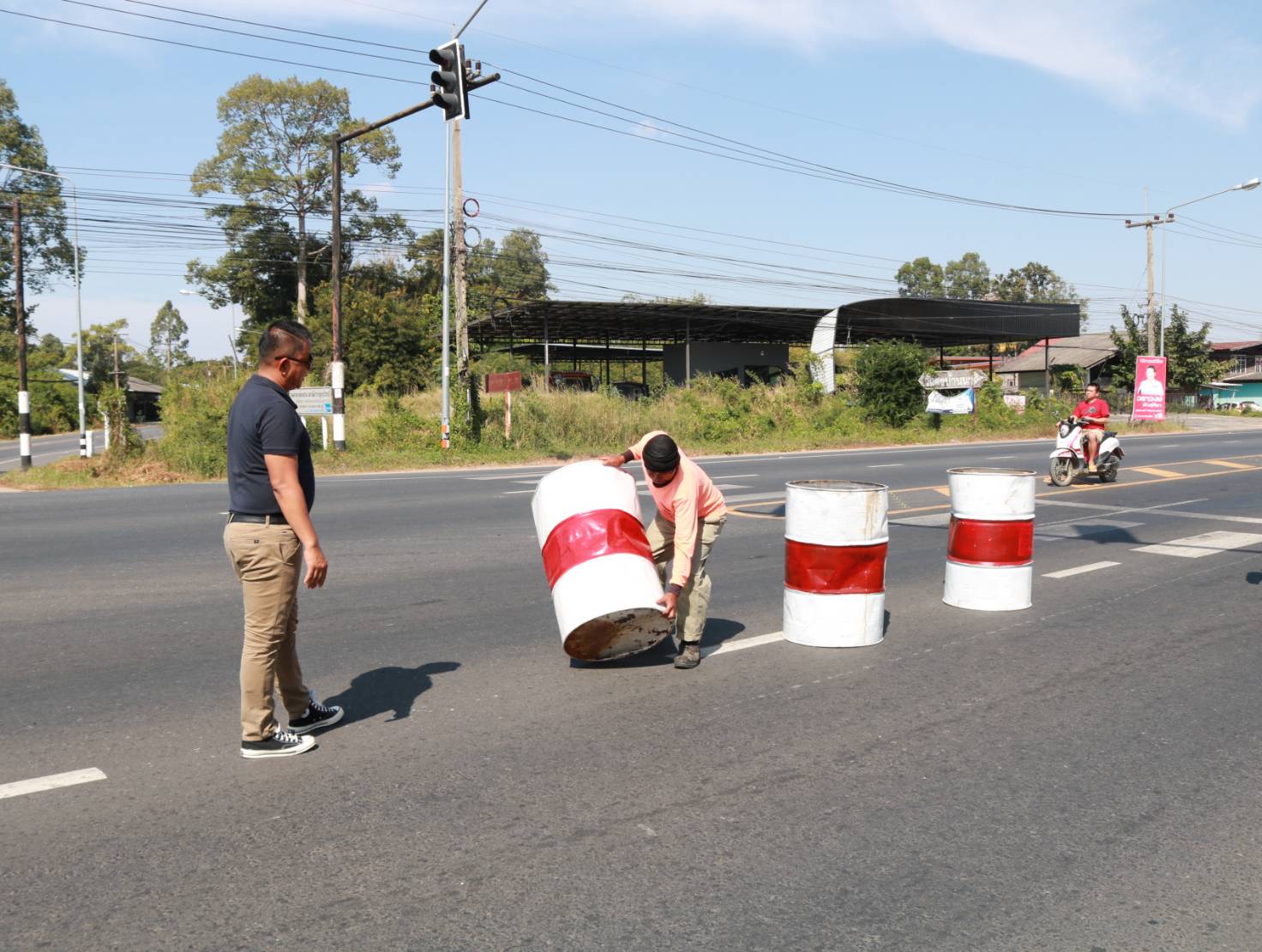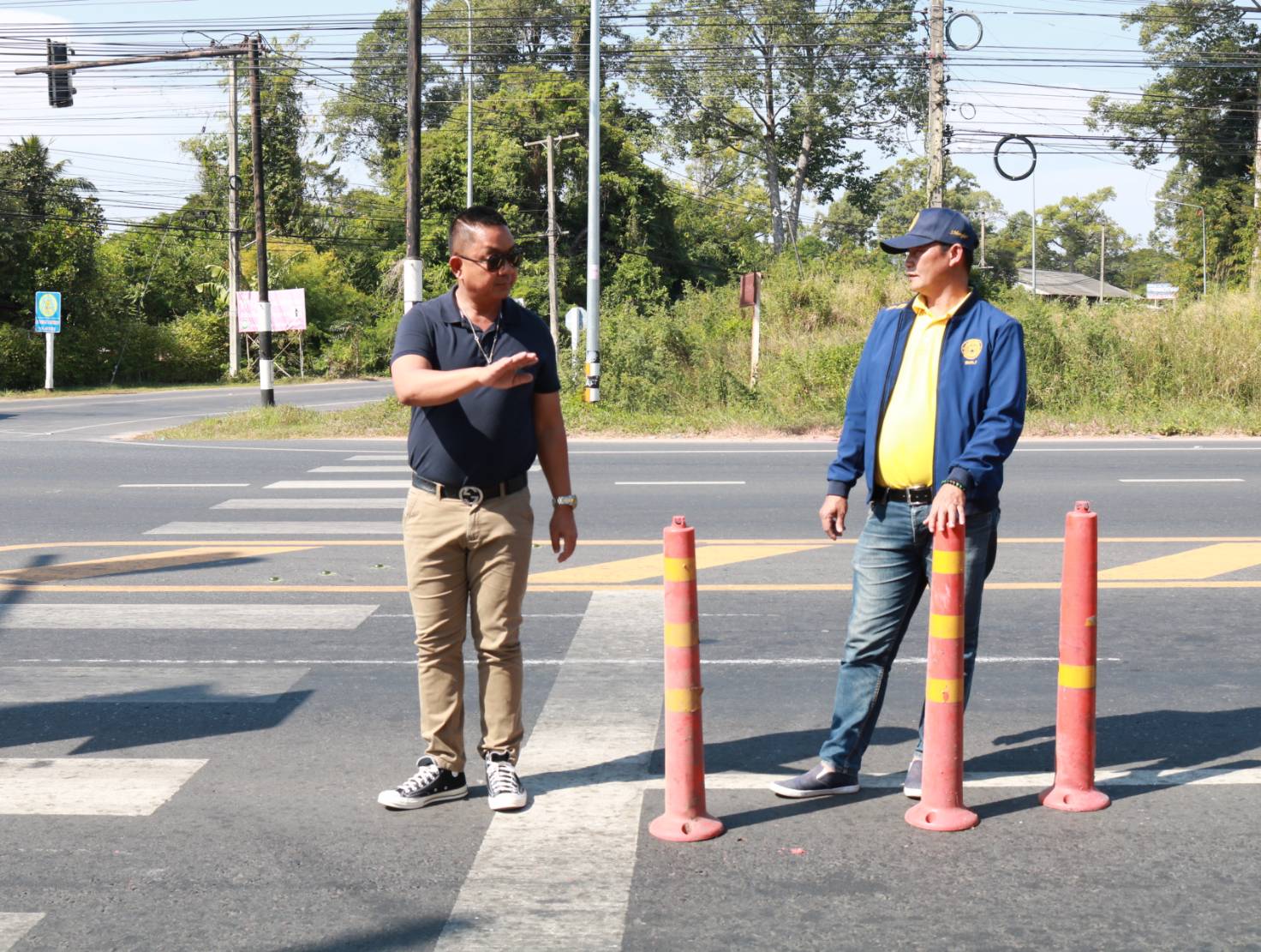 "ร่วมลงพื้นที่ตรวจสอบกายภาพทางหลวง จุดเสี่ยง/จุดอันตรายบริเวณสามแยก โดยได้แนะนำการปฏิบัติงานปรับปรุงจุดเสี่ยงในทางหลวงหมายเลข 2044 ตอน ร้อยเอ็ด - หนองดง ที่กม.3+300 (สามแยกบ้านดงนา)"