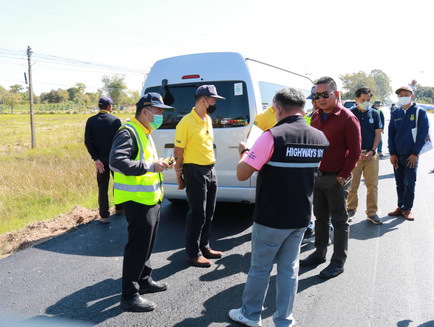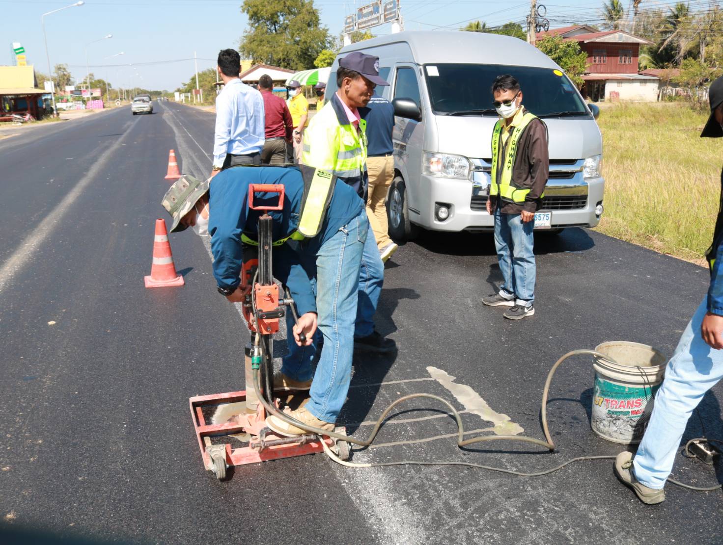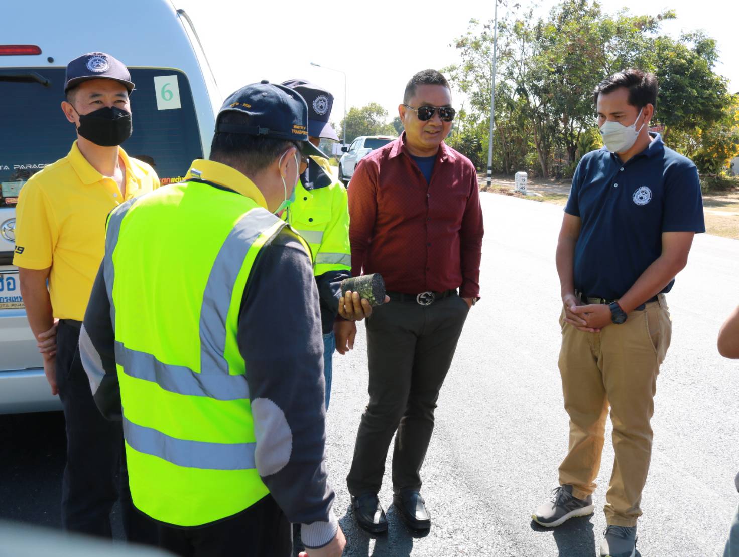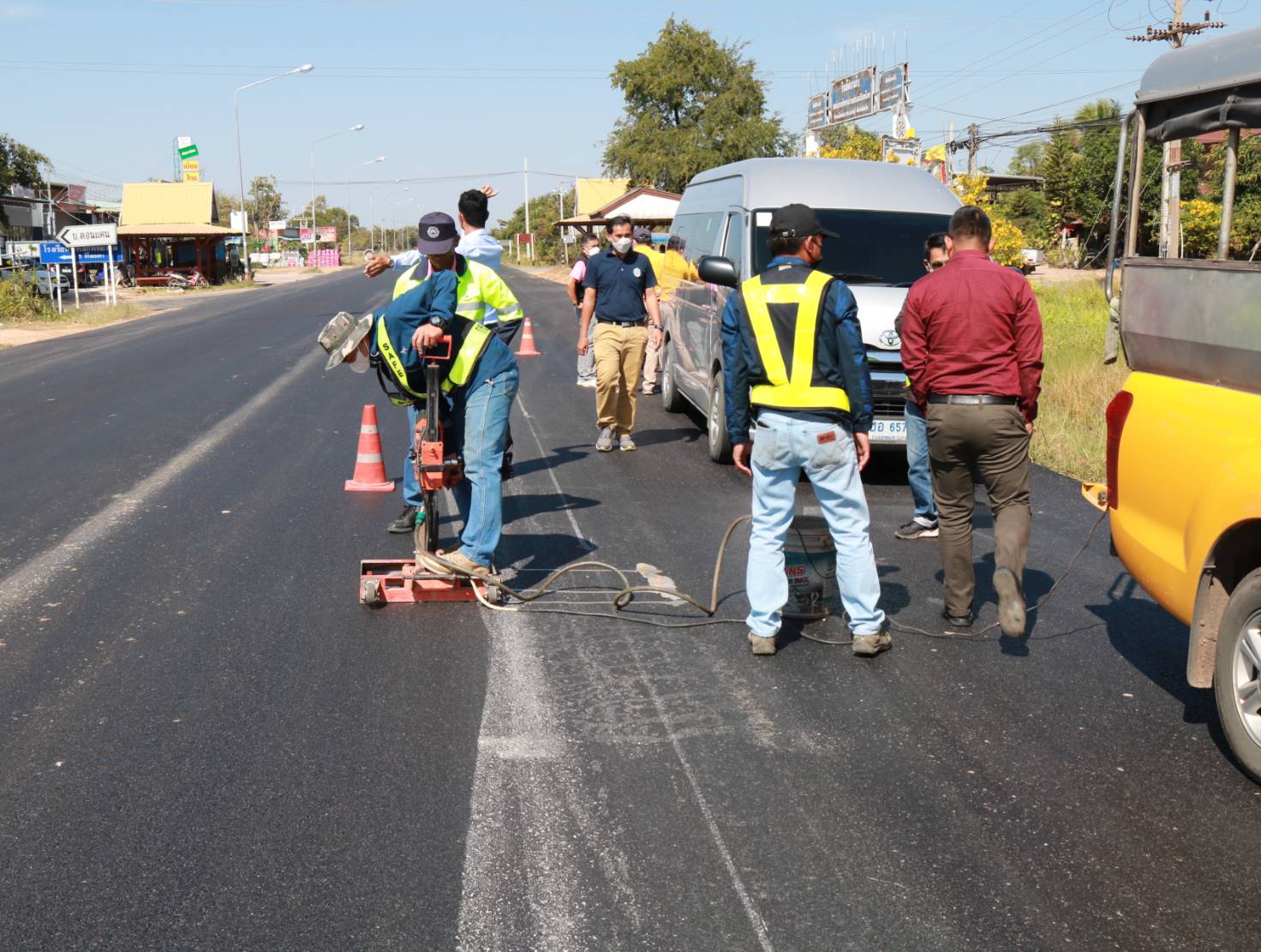 นายชาญพินิจ พินิจศักดิ์ รองผู้อำนวยการสำนักงานทางหลวงที่ 8 (มหาสารคาม) ประธานกรรมการตรวจรับพัสดุ ,นายมงคล แสนวงษา ผู้อำนวยการแขวงทางหลวงร้อยเอ็ด พร้อมด้วยคณะกรรมการฯ ร่วมตรวจงานก่อสร้าง ตามสัญญาเลขที่ รอ.13/2566 ลงวันที่ 4 พฤศจิกายน 2565 งานเสริมผิวแอสฟัลต์คอนกรีต ในทางหลวงหมายเลข 2043 ตอน ร้อยเอ็ด - ยางเฌอ ระหว่าง กม.12+180 - กม.15+020 โดยมีห้างหุ้นส่วนจำกัด ศรีแก่นเพชรเมยวดี 99 เป็นผู้รับจ้าง