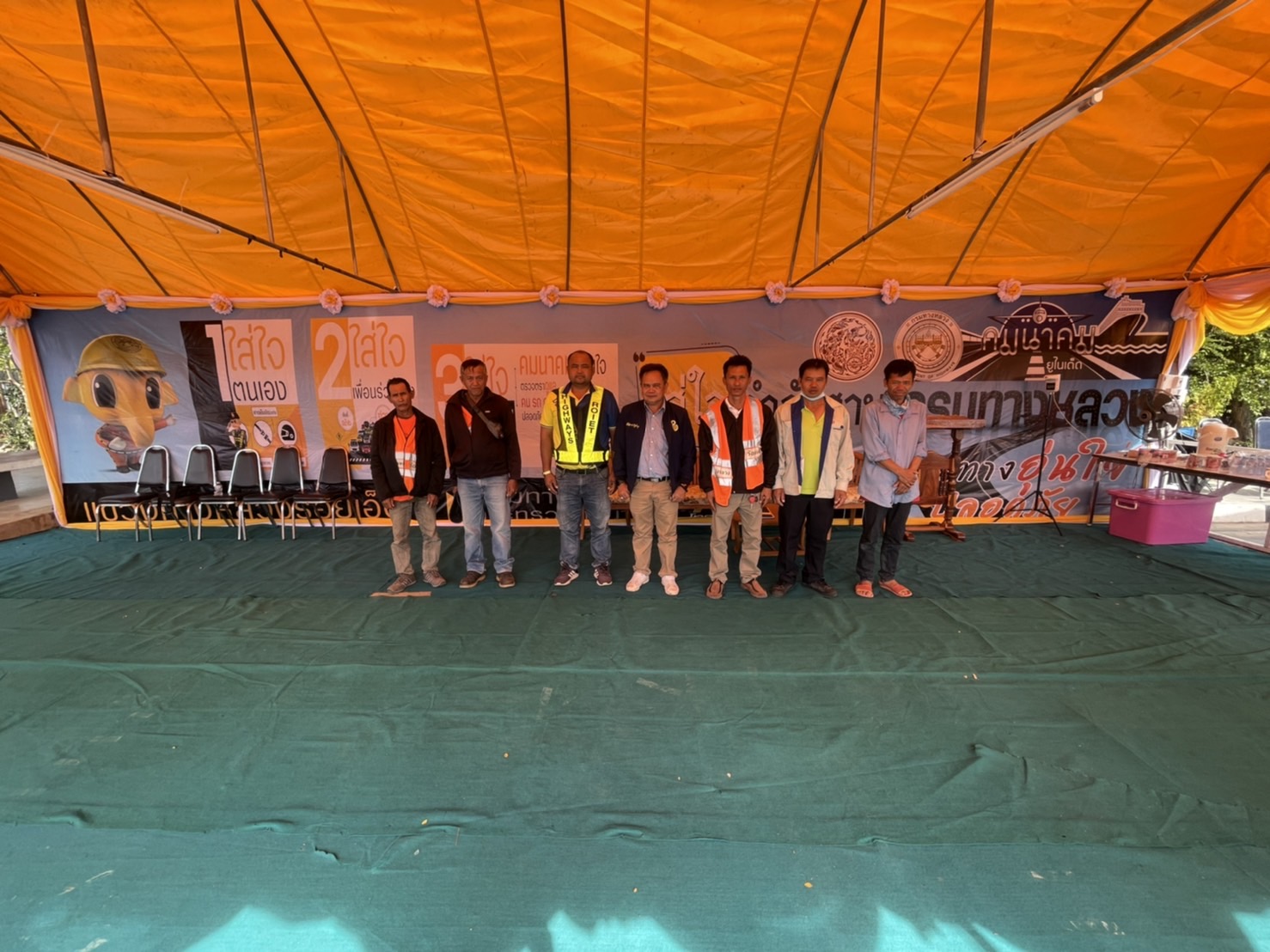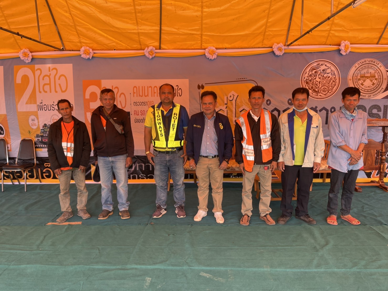 นายสมัย คะนะมะ รองผู้อำนวยการแขวงทางหลวงร้อยเอ็ด ฝ่ายวิศวกรรม ตรวจเยี่ยมเพื่อให้กำลังใจแก่เจ้าหน้าที่ผู้ปฏิบัติงาน ศูนย์อำนวยความสะดวกและปลอดภัยในช่วงเทศกาลปีใหม่ 2566 ณ “จุดบริการทั่วไทย” บริเวณจุดพักรถ ในทางหลวงหมายเลข 23 ตอน ห้วยแอ่ง - ร้อยเอ็ด ที่ กม.103+750 ด้านซ้ายทาง (จุดพักรถบ้านดงยาง)